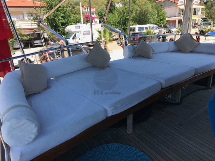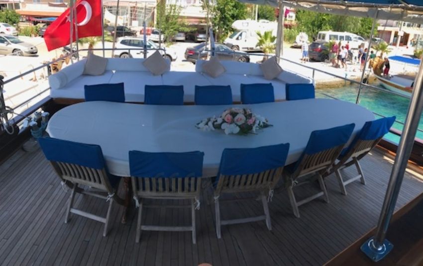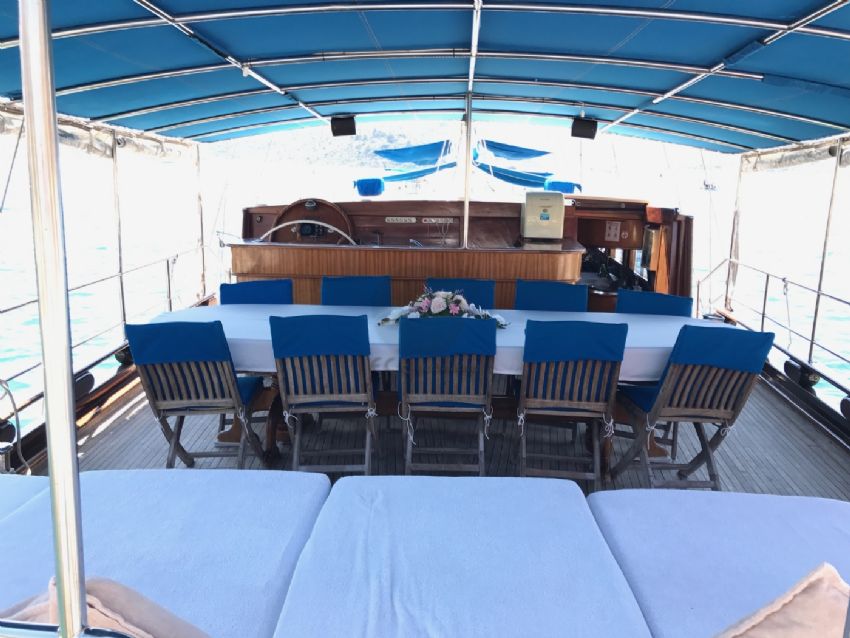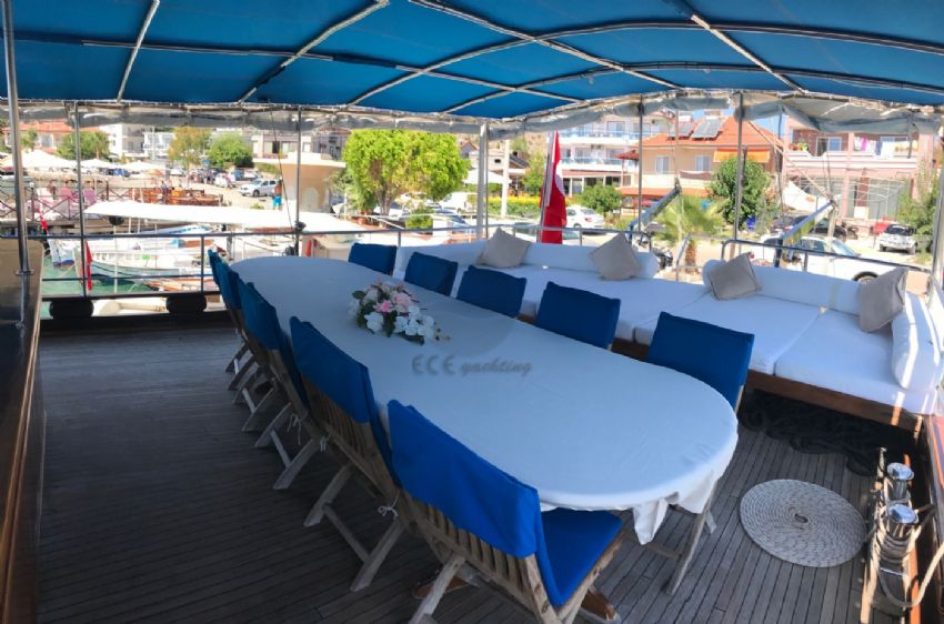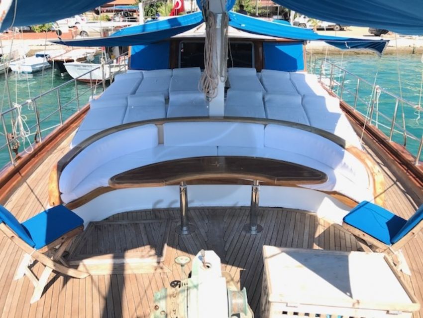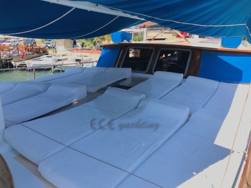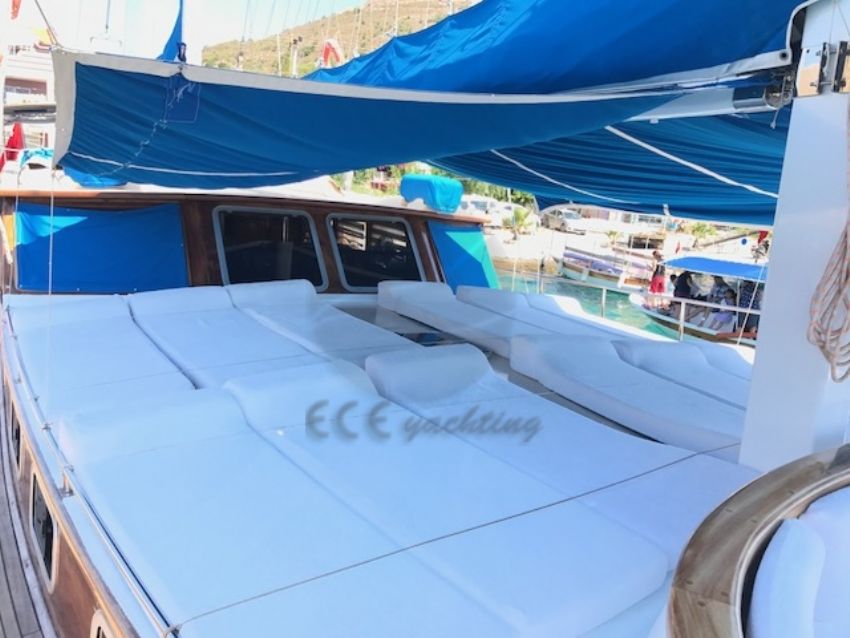 23 metre uzunluk ve 6,30 m. genişliğine sahip teknemizde 12 yolcuya kadar hizmet verilebilmektedir. Bozburun başlançıç ve bitişli, Orhaniye, Selimiye, Datça rotasında hizmet verebilen teknemiz, arzu etmeniz halinde ise Göcek koylarını ziyaret etme imkanı sunabilmektedir. Ekonomik fiyatı ile diğer teknelerin önüne geçen ketch yapıya sahip yatımızda olması gereken tüm aksesuar ve mefruşat mevcuttur. Teknemizin en bütük artısı 1 hafta aynı ortamı paylaşacağınız güler yüzlü kaptanı ve ekibidir. A96 Gulet Yat