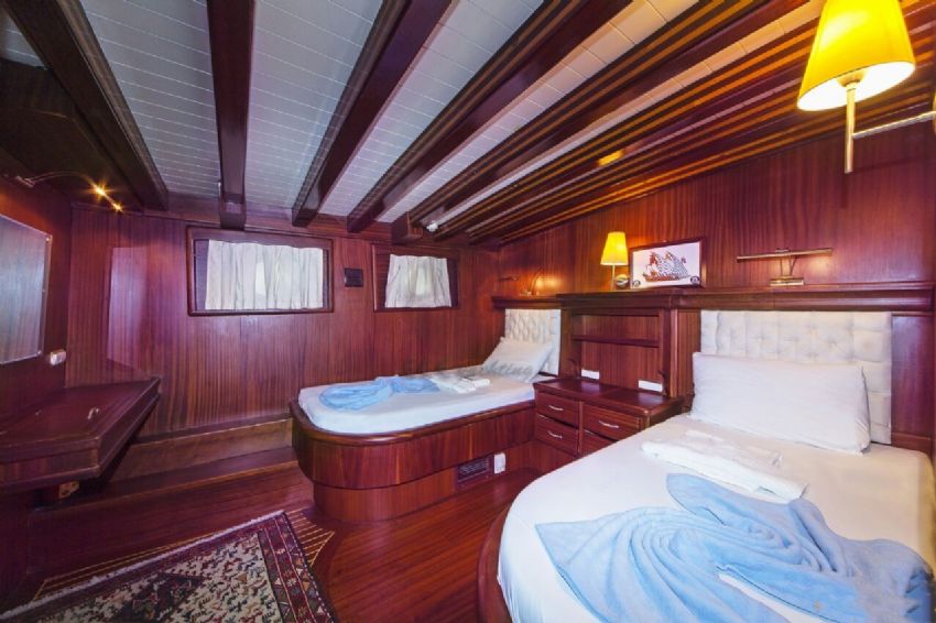 2007 yılında denizle buluşan teknemiz, 16 kişiye kadar olan nezih gruplarınıza hizmet vermektedir. 35 metre uzunluğundaki teknemizde, ferah ve konforlu 8 kabin bulunmaktadır.Hava ve deniz koşulları uygun olduğunda yelken seyri de yapabileceğiniz teknemizde, her biri alanında deneyimli ve güler yüzlü 4 kişilik mürettebatımız misafir memnuniyeti odaklı servis anlayışıyla hizmet vermektedir. A Candan Yatı.