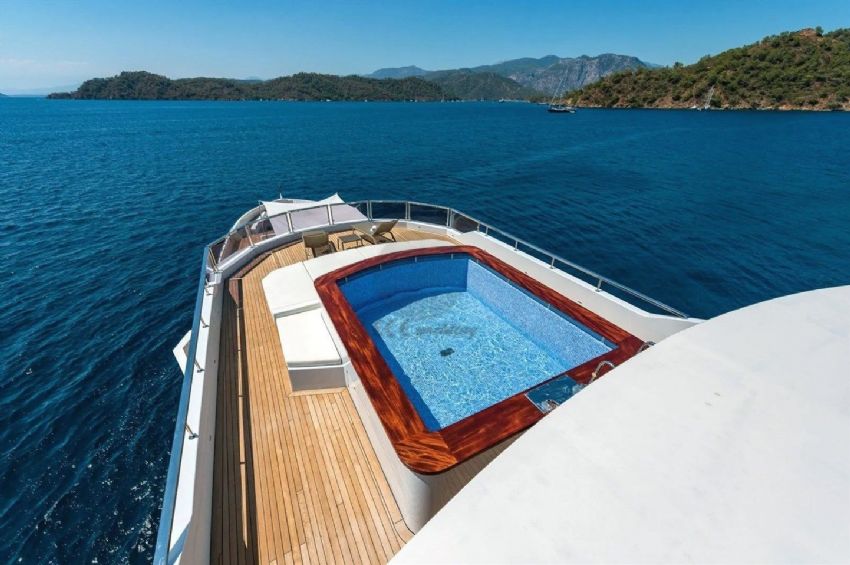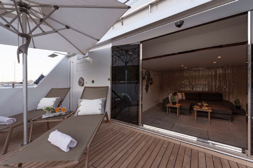 Şnorkel ekipmanları, Balık tutma malzemeleri, Güneş tenteleri, Güneş yatakları, Güvertede duş, Deniz merdiveni