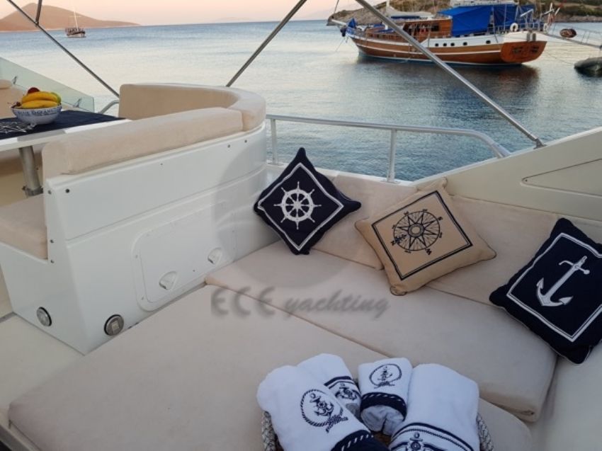 Şnorkel ekipmanları, Balık tutma malzemeleri, Güneş tenteleri, Güneş yatakları, Güvertede duş, Deniz merdiveni