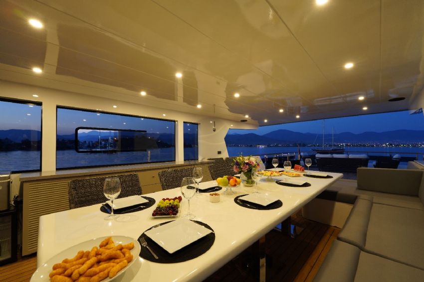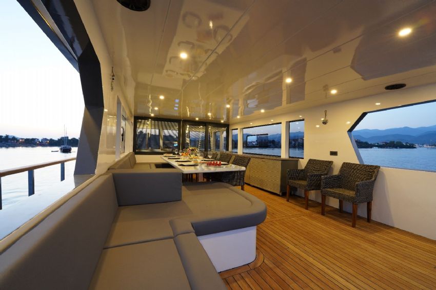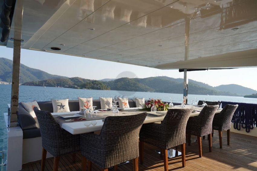 Şnorkel ekipmanları, Balık tutma malzemeleri, Güneş tenteleri, Güneş yatakları, Güvertede duş, Deniz merdiveni