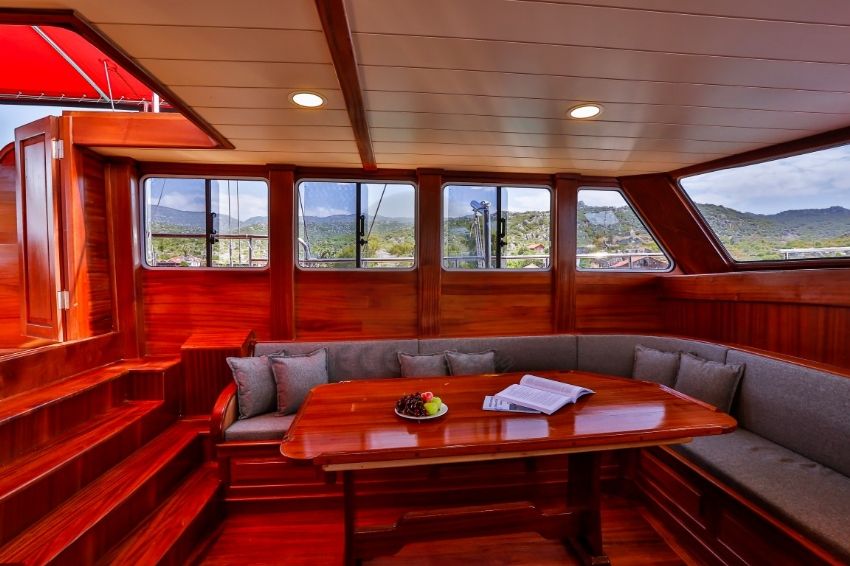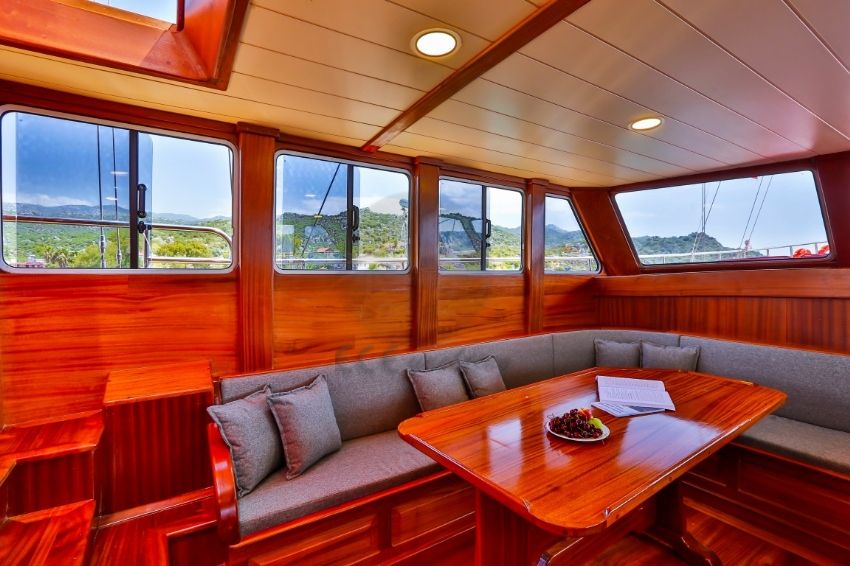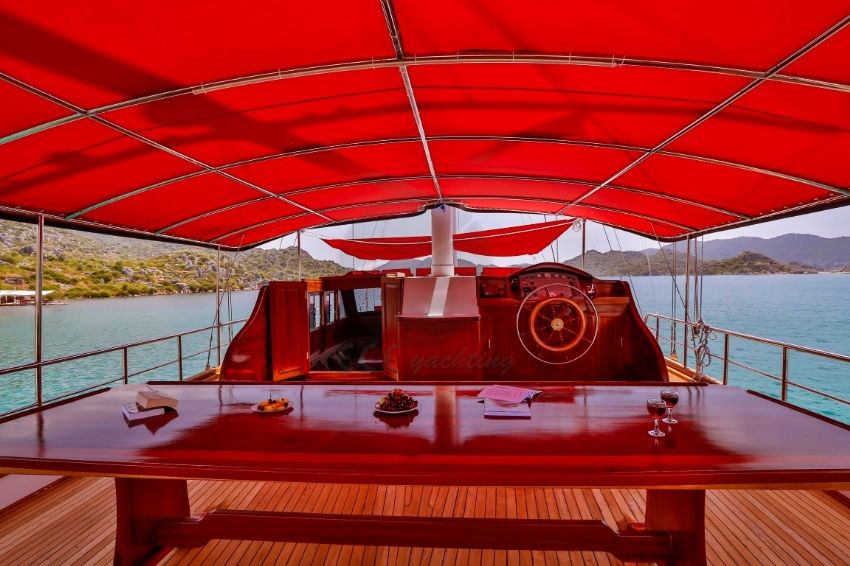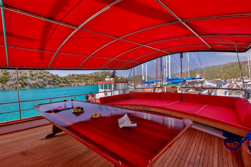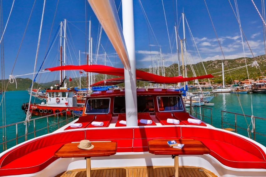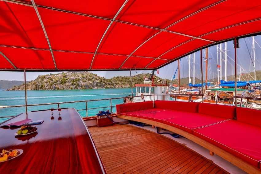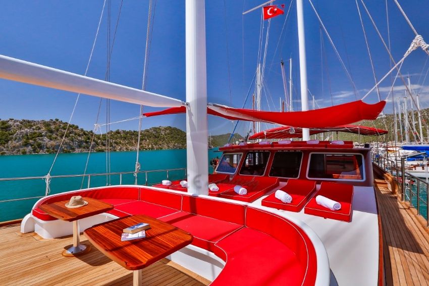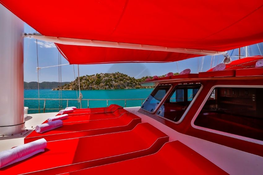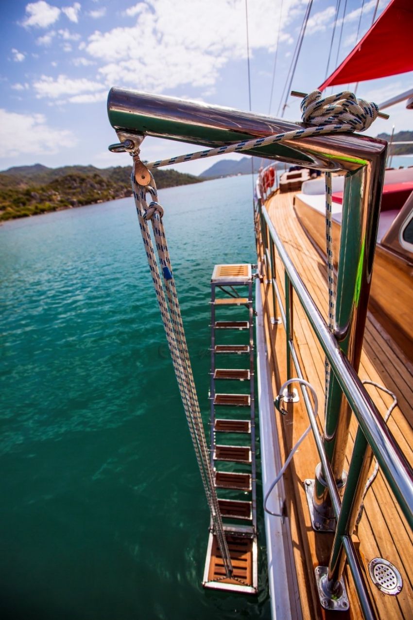 Dalış malzemeleri, Balık tutma malzemeleri, Güneş tenteleri, Güneş yatakları, Güvertede duş, Deniz merdiveni