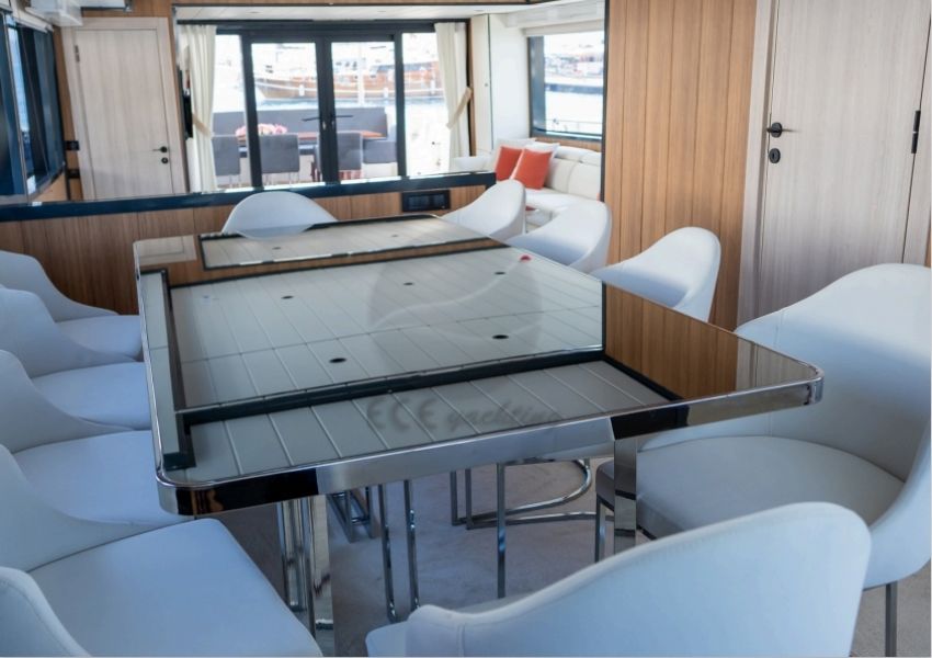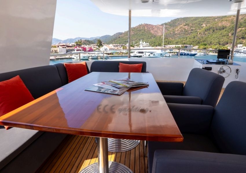 Şnorkel ekipmanları, Balık tutma malzemeleri, Güneş tenteleri, Güneş yatakları, Güvertede duş, Deniz merdiveni