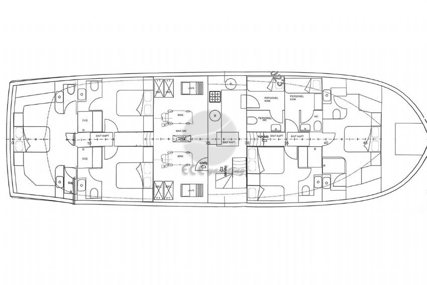 5 kabin / 2 x Master, 1 x Double, 1 x Triple, 1 x Ranzalı