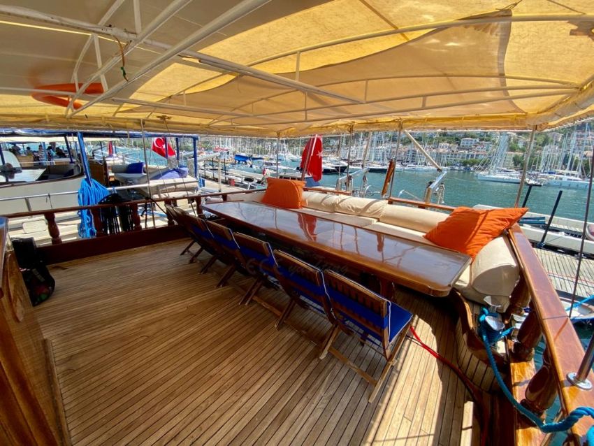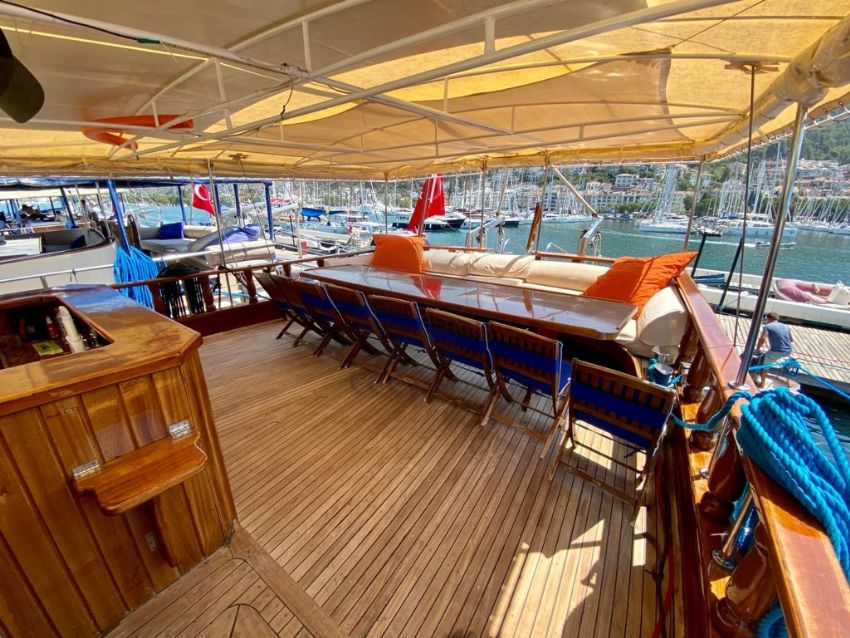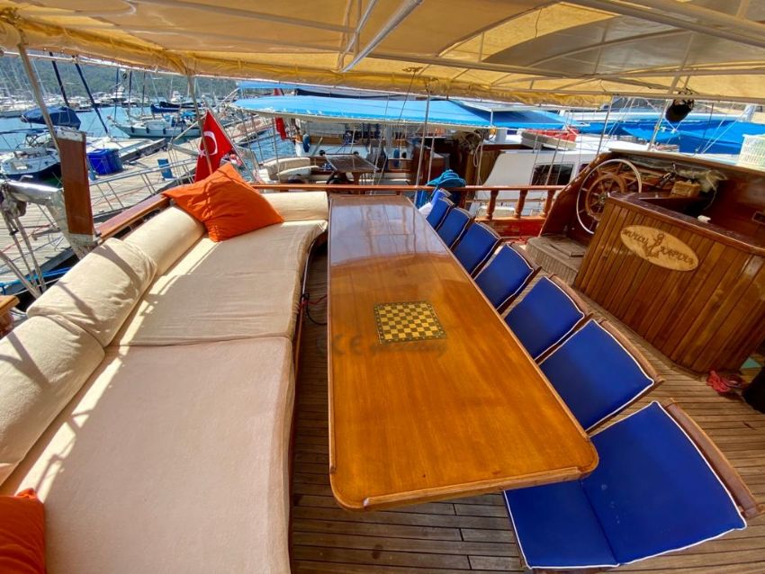 2019 yılında yenilenen yatımız ,24 metre, 6-7 double kabin seçenekleriyle toplam 12-14 kişiye kadar konaklama imkanı sağlamaktadır. Klasik mobilyalı döşenmiş kabinlerin her birinde wc , duş bulunmaktadır. Arka güvertede bulunan yemek masası ve dinlenme alanı , ön güvertede ise açılır - kapanır tenteli güneşlenme alanı keyifli vakitler geçirmeniz için özenle tasarlanmıştır. Fethiye çıkışlı mavi yolculuk hizmeti veren yatımızda , birbirinden deneyimli ve güler yüzlü 3 personel tatiliniz boyunca sizlere hizmet vermekten mutluluk duyacaktır.