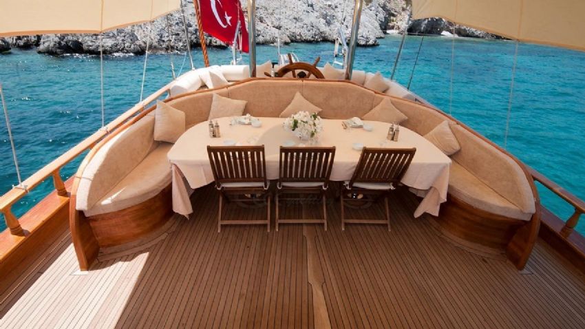Dalış malzemeleri, Balık tutma malzemeleri, Güneş tenteleri, Güneş yatakları, Güvertede duş, Deniz merdiveni