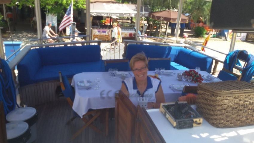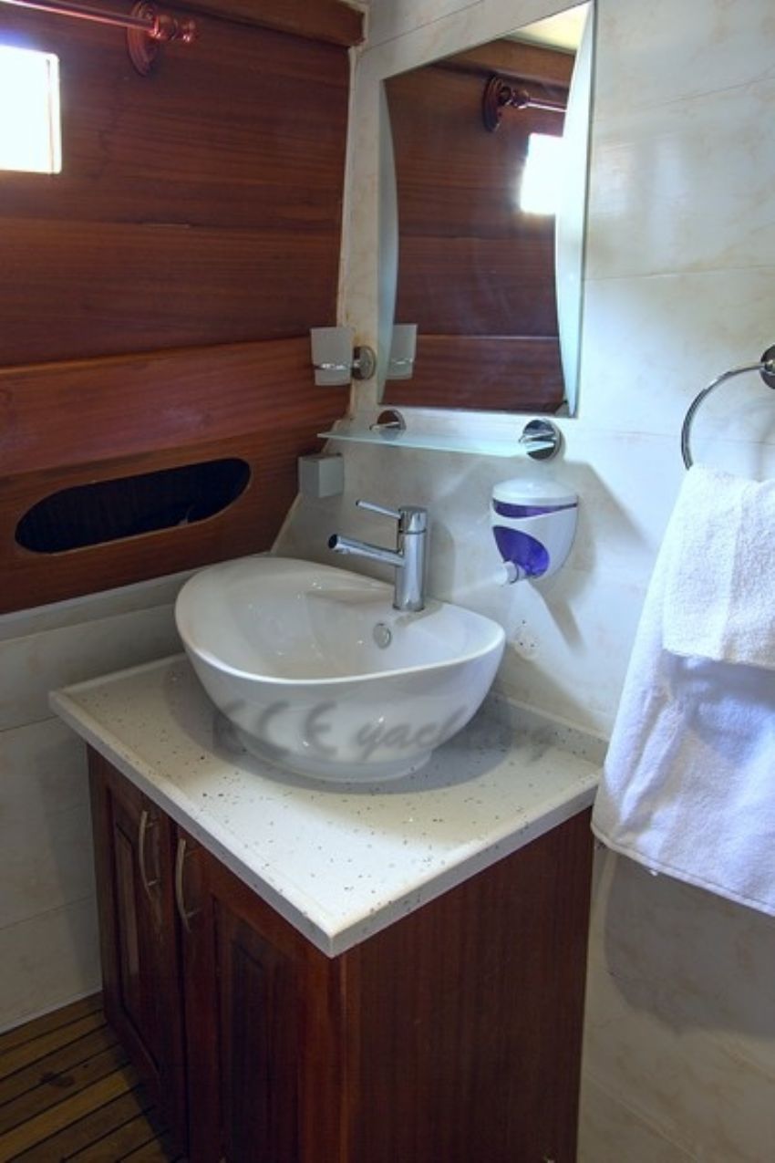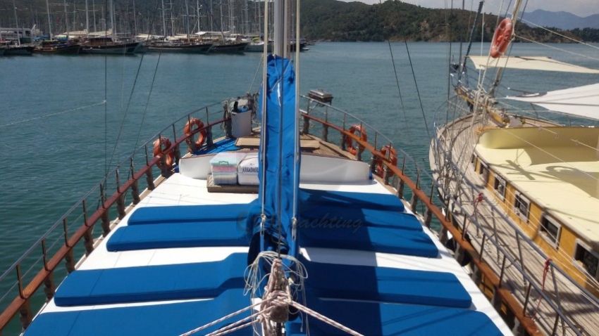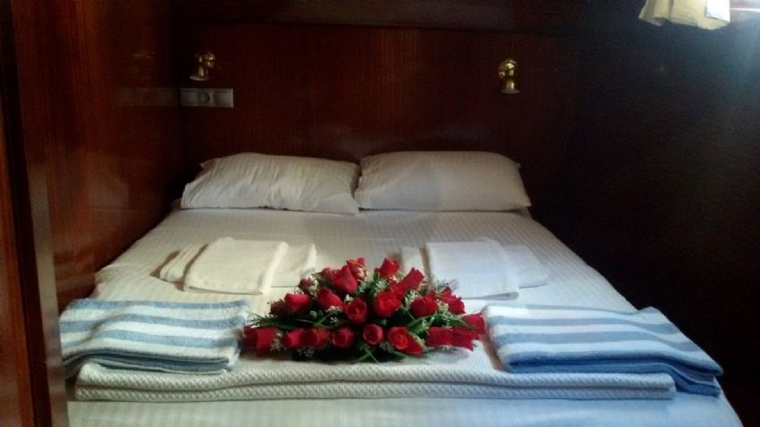 2014 yılında komple yenilenen teknemizde 8 yatak kapasitesi vardır. Dileyen aileler 10 kişiye kadar teknemizde kalabilir. Arkadaşlık yatında aile ortamını hissedebileceğiniz ve mavi yolculukta keyifli zamanlar geçirebilmeniz için yardımcı olan 4 kişilik ekip mevcuttur. Tekne donatanımız olan Kanadalı Sue Hanım, serviste ekibimize yardımcı olmaktadır. Teknede yabancı bir hanımın dokunuşlarını mavi turunuzda hissedebileceğinizi düşünmekteyiz. Tüm rotalarda hizmet verebilen lüks teknemizde Türk sularında limitsiz internet hizmeti verilmektedir. Teknemizin tüm kamaralarında güvenlik kasası bulunmaktadır.