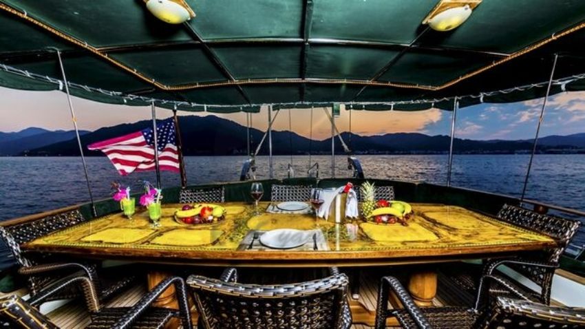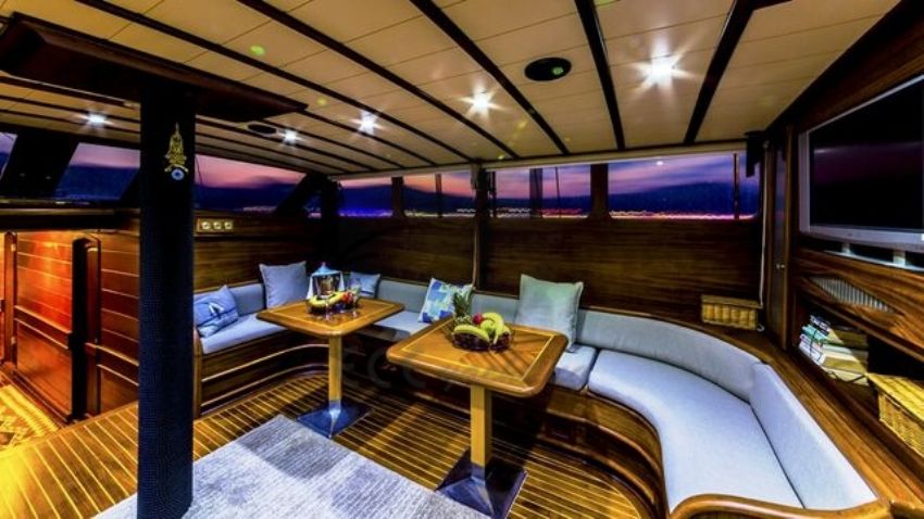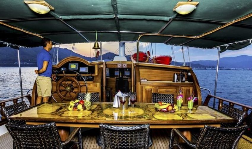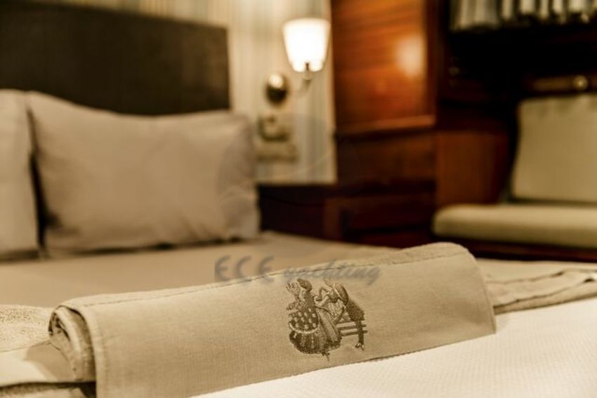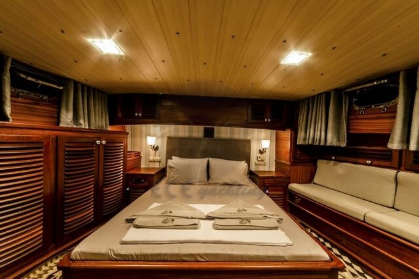 24 metre uzunluğundaki teknemiz, lüks kategoride mavi yolculuk hizmeti vermektedir. Duvar kağıtlarının dahi Paris ten geldiği teknemiz 2015 yılında komple revize edilmiştir. Lüks teknemizde konforlu 4 kabin bulunmaktadır. 8 kişi ağırlayabilme kapasitesine sahip teknemizde, deneyimli ve güler yüzlü mürettebatımız misafir memnuniyeti odaklı servis anlayışıyla hizmetinizdedir. Alternatif su sporları hizmeti verebilen yatımızda Türk sularında internet hizmeti verilebildiği gibi hava koşullarının el verdiğince yelken seyri de yapılmaktadır.