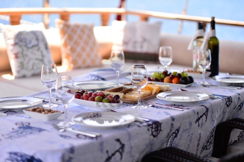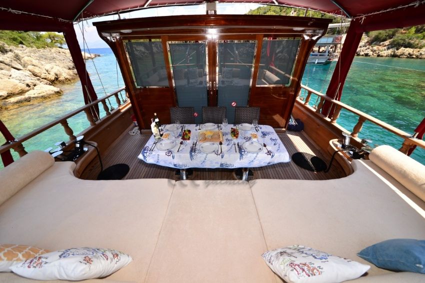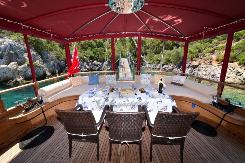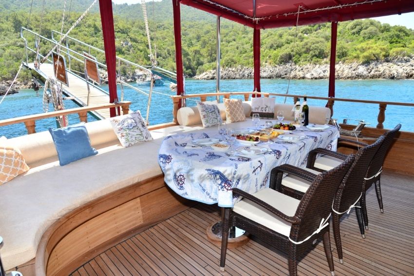 Dalış malzemeleri, Balık tutma malzemeleri, Güneş tenteleri, Güneş yatakları, Güvertede duş, Deniz merdiveni