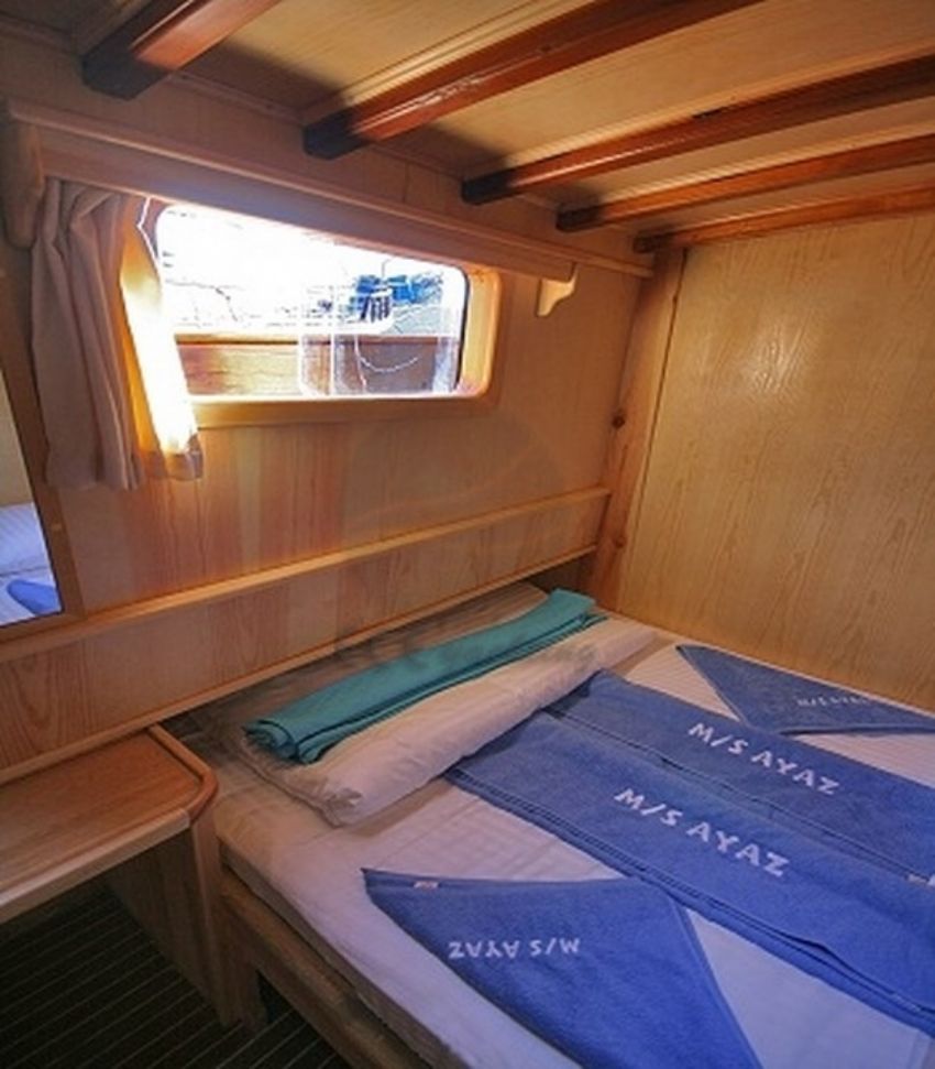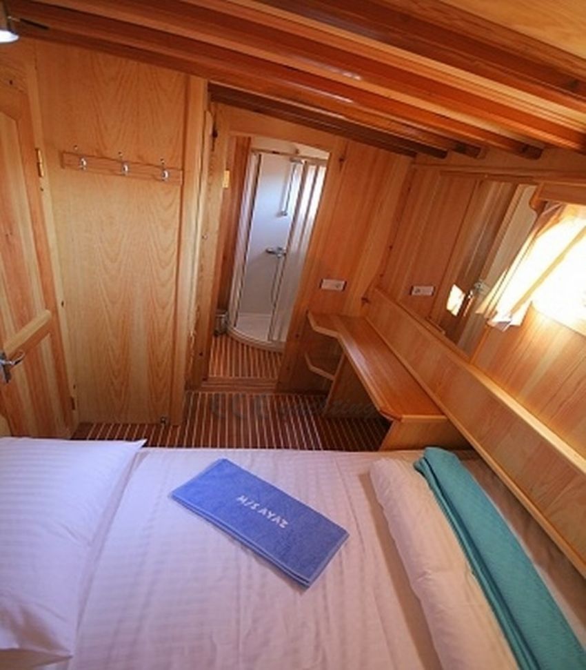 4 double kabinli olup deneyimli 3 personelimiz ile misafirlerimize tatilleri süresince güleryüzlü hizmet vermektedir. Misafirlerimizin deniz ve güneşin tadını doya doya çıkarabilecekleri teknemizde yelkenle seyir yapma imkanına da sahipsiniz.