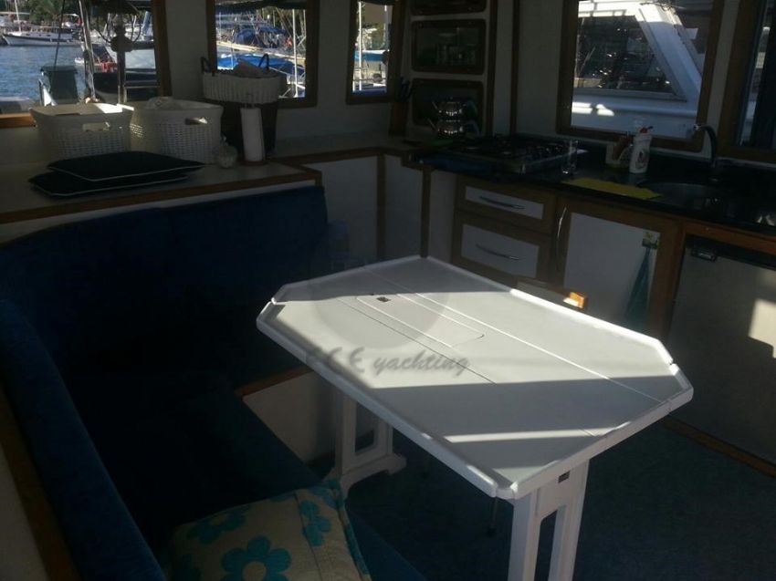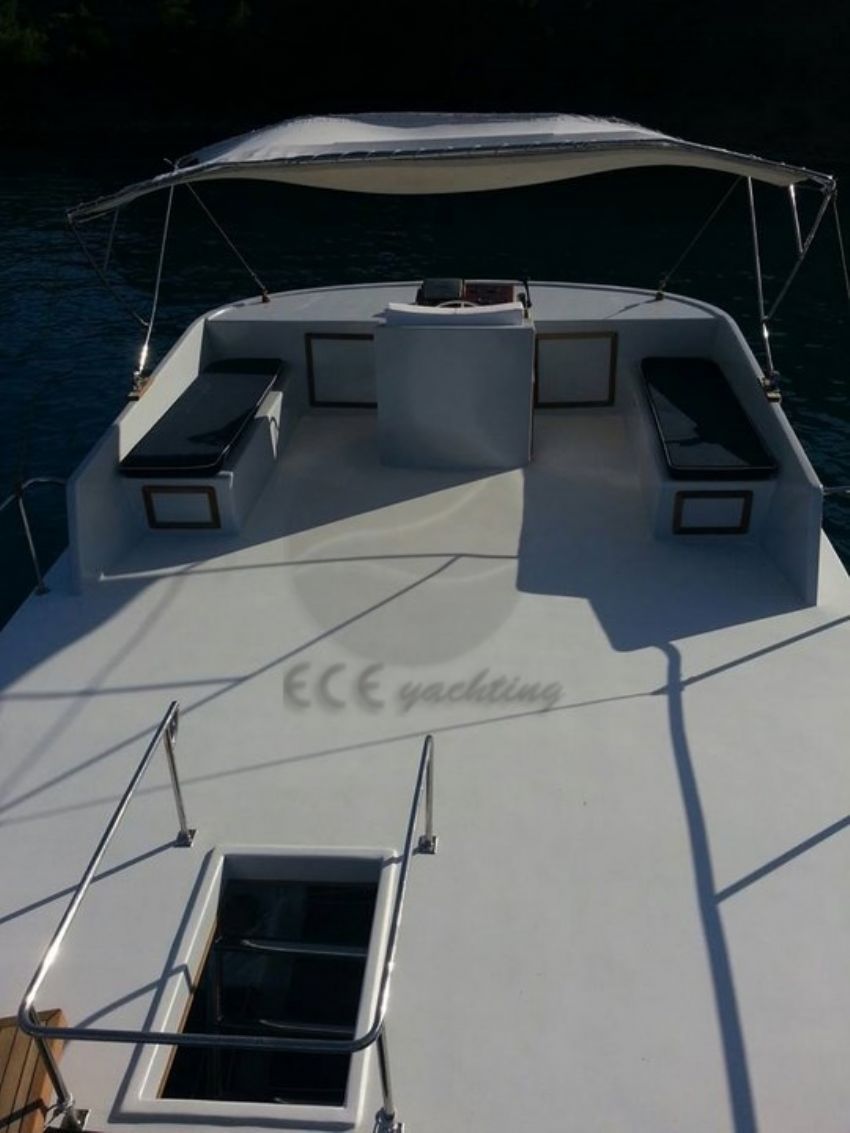 2013 yılında yapılan ve geleneksel mavi yolculuk teknelerinden farklı dizaynı ile dikkat çeken teknemizde, altı kişiye kadar konaklamalı, on kişiye kadar da günübirlik tur organizasyonlarına hizmet verebilmekteyiz. Teknemizin arka kısmında bağımsız girişe sahip ana kabinimizde duş ve wc kabinin içindedir, diğer ön kısımdaki iki kabinimiz de ise wc ve duş ortak kullanım şeklinde her iki kabin tarafından paylaşılmaktadır. Teknemizin oldukça rahat ve konforlu ikinci katı sayesinde misafirlerimiz tatilleri boyunca gözlerden uzak güneşin tadını çıkarma fırsatı bulacaklardır. Teknenin arka kısmındaki deniz platformu denize iniş çıkışlarda misafirlerimize ekstra konfor sunmaktadır. M/Y Ay-Ba Tur