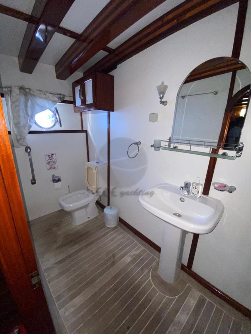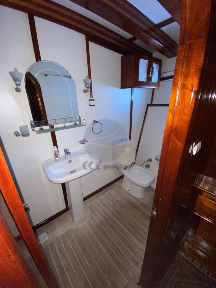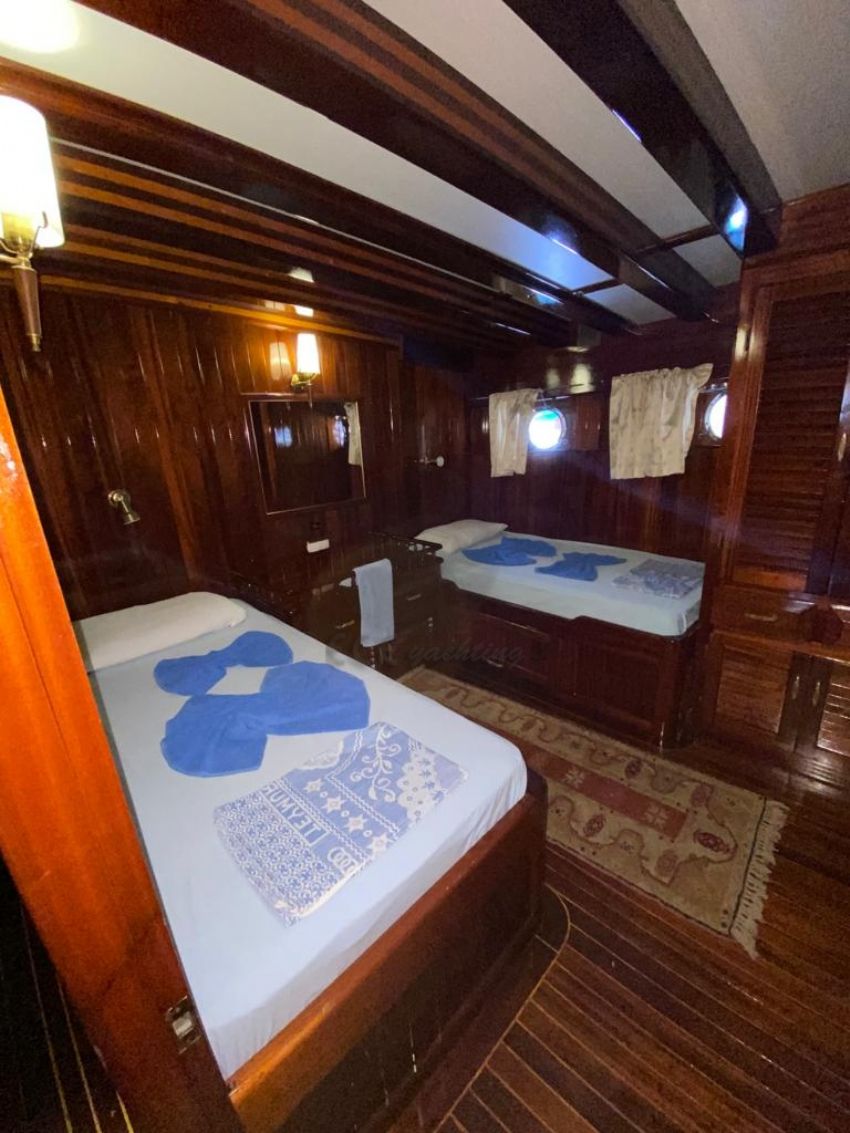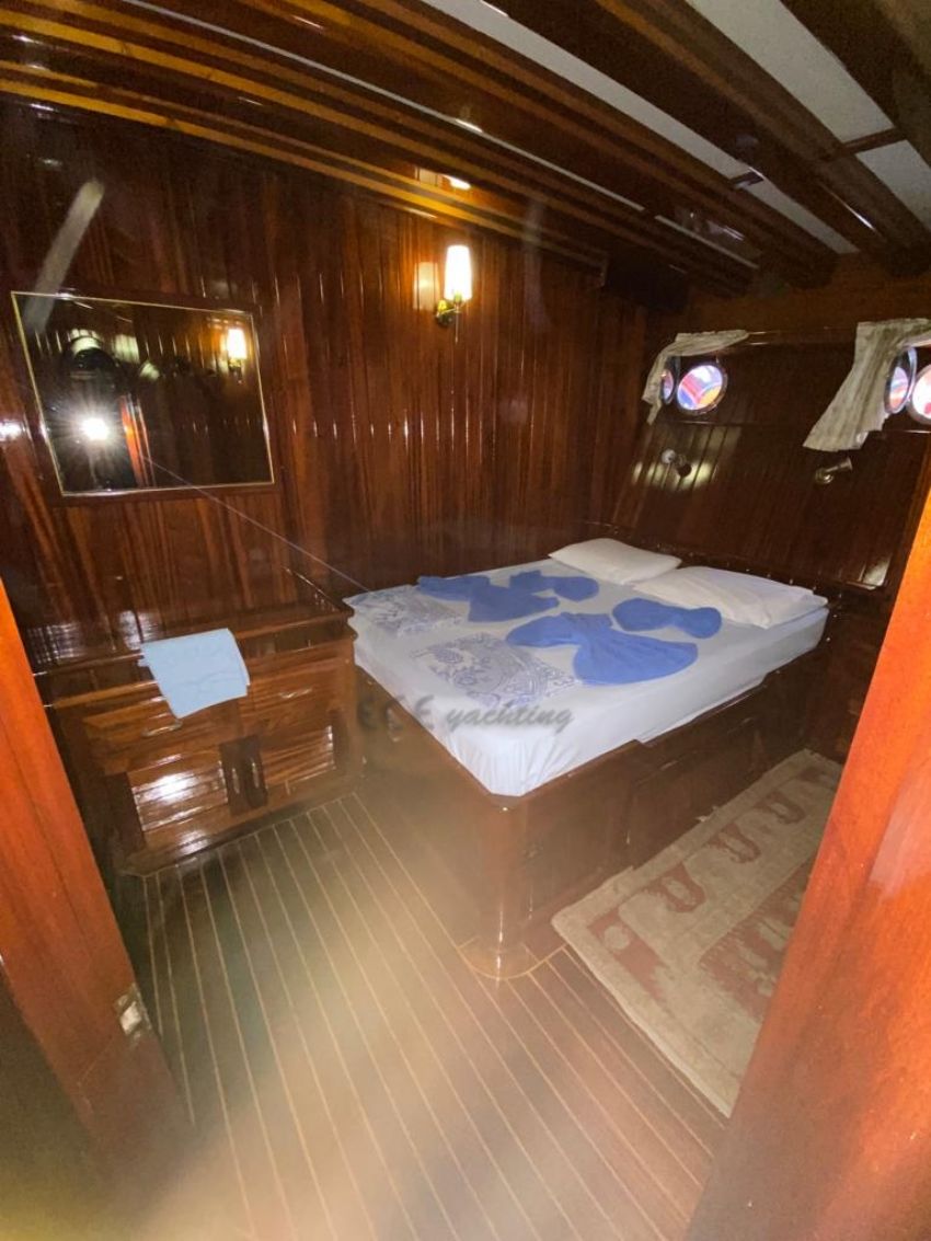 Bahriyeli serisinin en büyük yatı olma özelliğine sahip teknemizde, kalabalık gruplar için mavi yolculukta ihtiyaç duyabileceğiniz her tür detay düşünülmüştür. 44 metre uzunluğundaki teknemiz, 2 double ve 10 twin kabiniyle şirket organizasyonları için de çok uygun ve talep edilen teknelerimizdendir. Hava ve deniz koşulları uygun olduğunda yelken seyri de yapabileceğiniz teknemiz, 24 kişiye kadar olan nezih gruplarınızı ağırlayabilme kapasitesine sahiptir. Her biri alanında deneyimli ve güler yüzlü 5 kişilik mürettebatımızın, misafir memnuniyeti odaklı servis anlayışıyla tatilinizden unutulmaz anılarla ayrılacaksınız. Bahriyeli C Yatı.