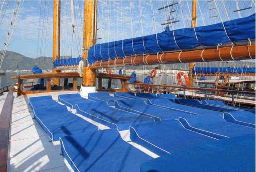 Şnorkel ekipmanları, Balık tutma malzemeleri, Güneş tenteleri, Güneş yatakları, Güvertede duş, Deniz merdiveni