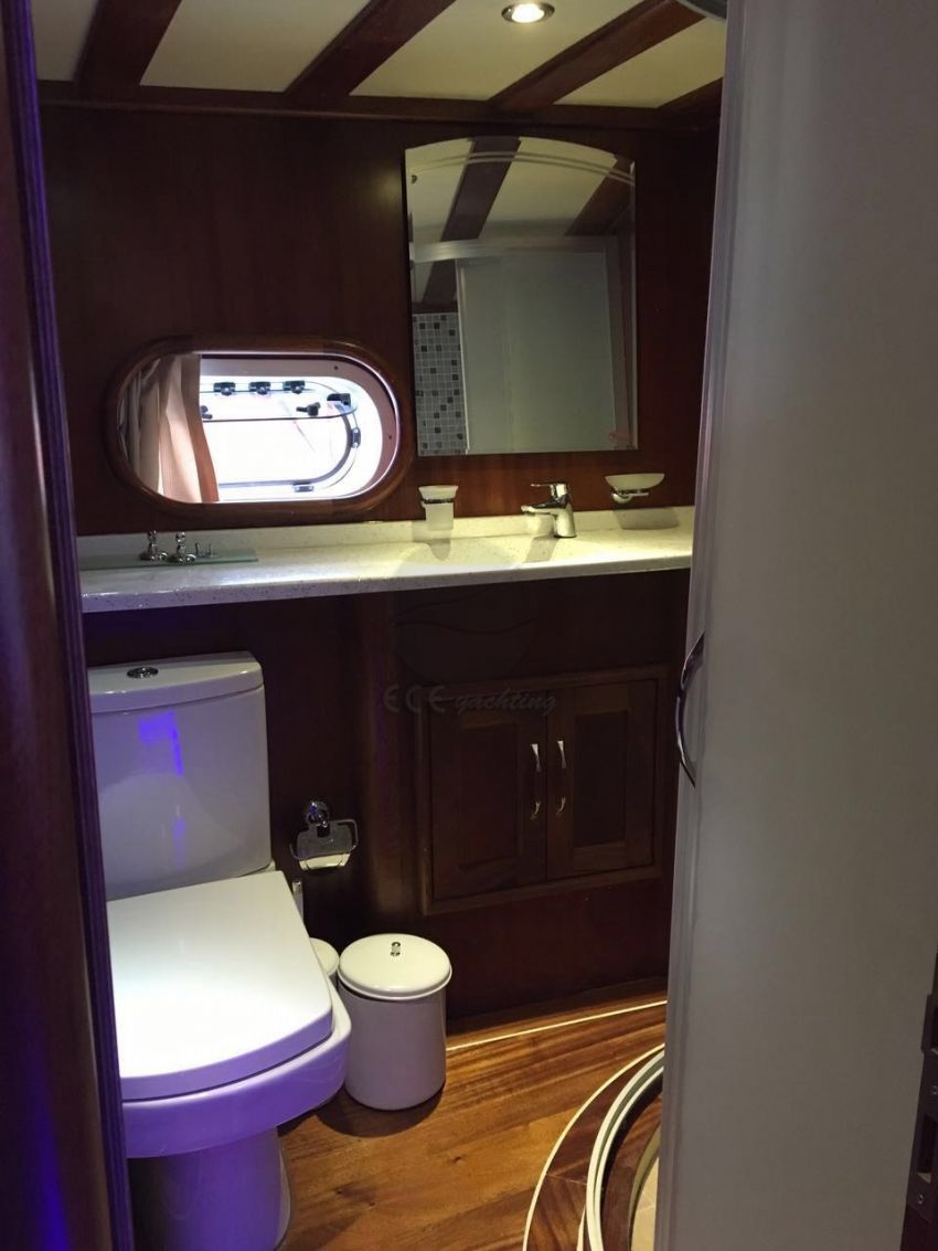 1997 yılında imal edilen ve 2016 yılında baştan aşağı yenilenen teknemizde eskiye ait parça bulabilmek neredeyse imkansızdır. 1 master, 4 dbl ve 1 twin kabinin bulunduğu teknede 12 kişinin kaliteli zaman geçirmesi için 4 kişilik mürettebatımız hizmet vermektedir. Teknenin tüm kamaralarında banyo ve duş kabini mevcuttur. Teknenin iç kısmında standart ahşap malzeme kullanılmış ve klasik malzeme kullanılmıştır. Ön güvertede 12 kişilik güneşlenme minderi ve ön oturma gurubu mevcuttur. arka yaşam alanında ana yemek masası bulunur. Diğer teknelerden farklı olarak ana yemek masasının dizaynı sayesinde servis imkanı çok daha kolay ve pratik olmaktadır. Teknede 24 saat elektrik mevcuttur. klima kullanım süresi günlük 4 - 6 saat arasındadır. Gece 00.00 itibariyle jeneratör kapatılacaktır.