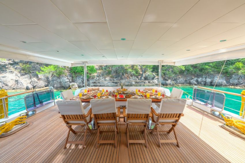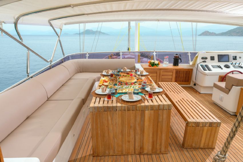 Şnorkel ekipmanları, Balık tutma malzemeleri, Güneş tenteleri, Güneş yatakları, Güvertede duş, Deniz merdiveni