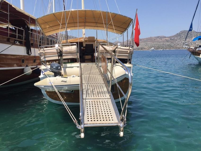 Şnorkel ekipmanları, Balık tutma malzemeleri, Güneş tenteleri, Güneş yatakları, Güvertede duş, Deniz merdiveni