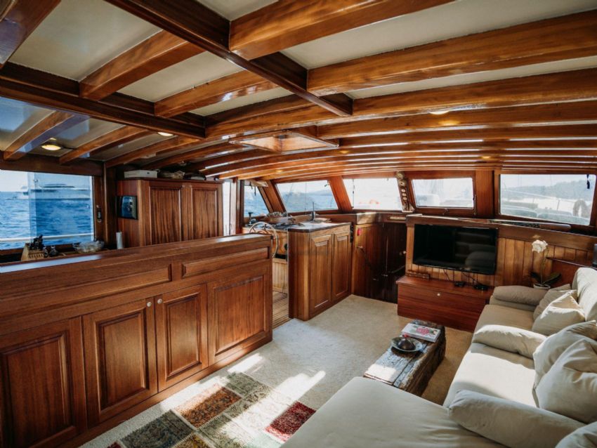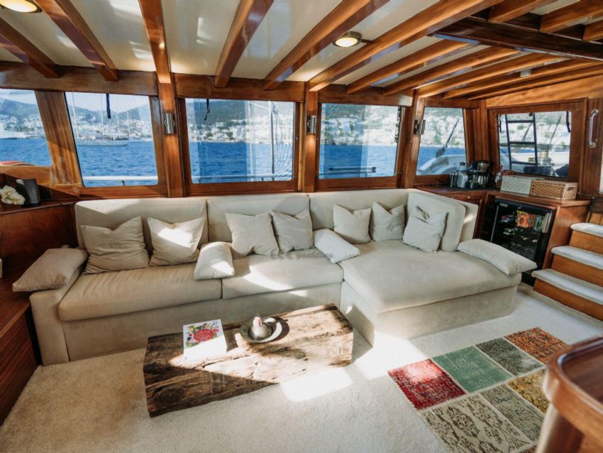 Guletin iç mekanında, 'L' şeklinde rahat bir kanepeye sahip davetkar bir salon bulunmaktadır. Misafirler burada TV izleyebilir, surround ses sistemiyle müzik dinleyebilir veya Nespresso makinesi ile sabah kahvelerinin tadını çıkarabilirler.