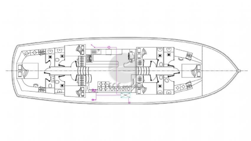 Şnorkel ekipmanları, Balık tutma malzemeleri, Güneş tenteleri, Güneş yatakları, Güvertede duş, Deniz merdiveni