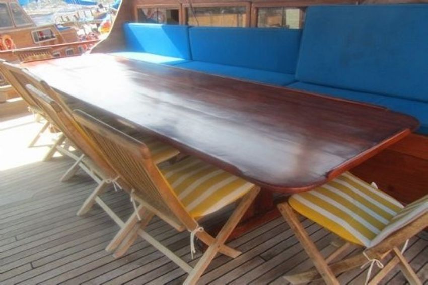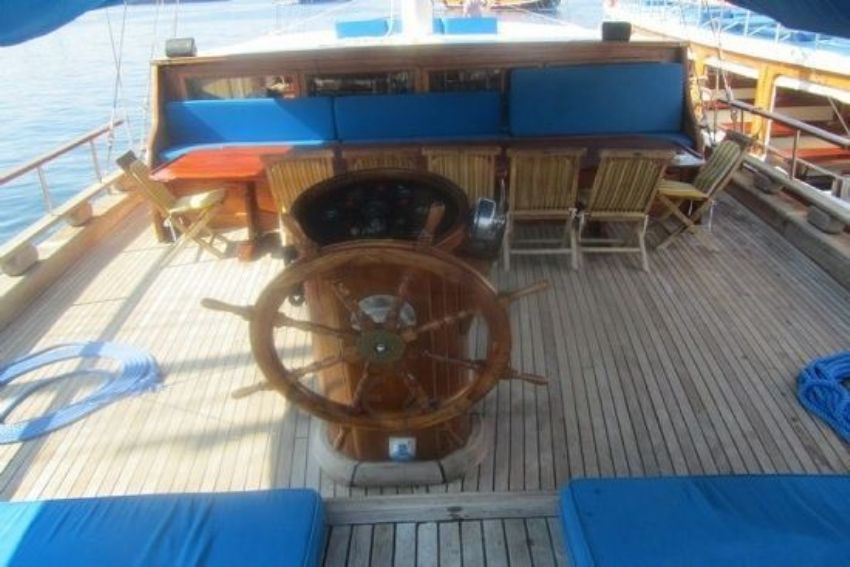 Dalış malzemeleri, Balık tutma malzemeleri, Güneş tenteleri, Güneş yatakları, Güvertede duş, Deniz merdiveni
