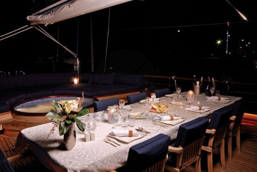 Güvertede Jakuzi, Şnorkel ekipmanları, Balık tutma malzemeleri, Güneş tenteleri, Güneş yatakları, Güvertede duş, Deniz merdiveni