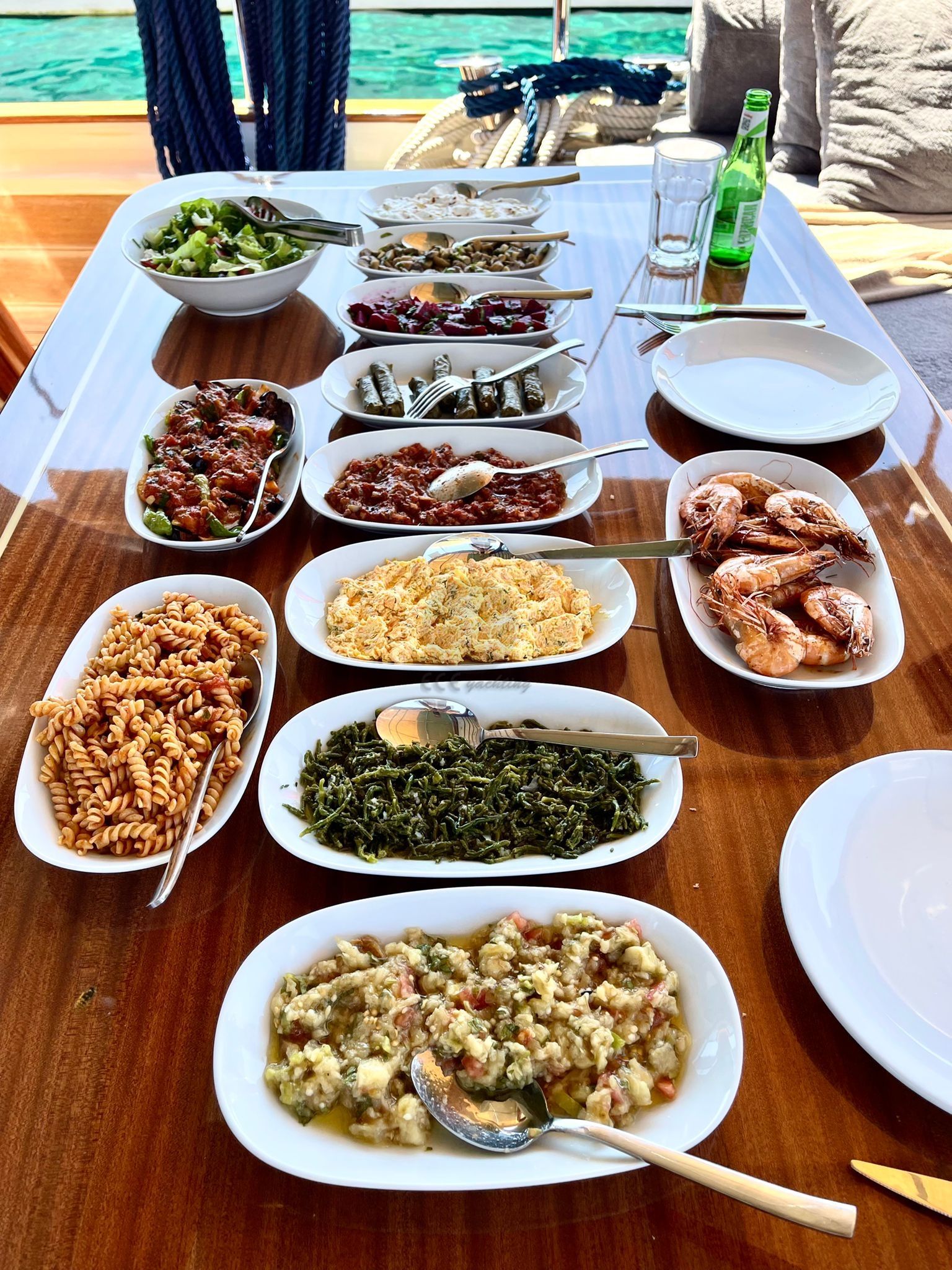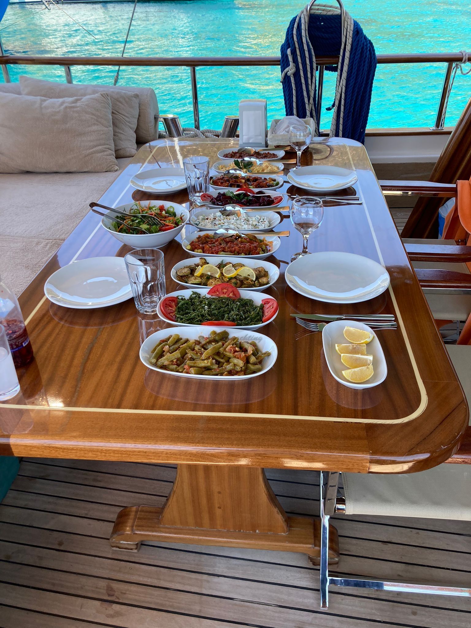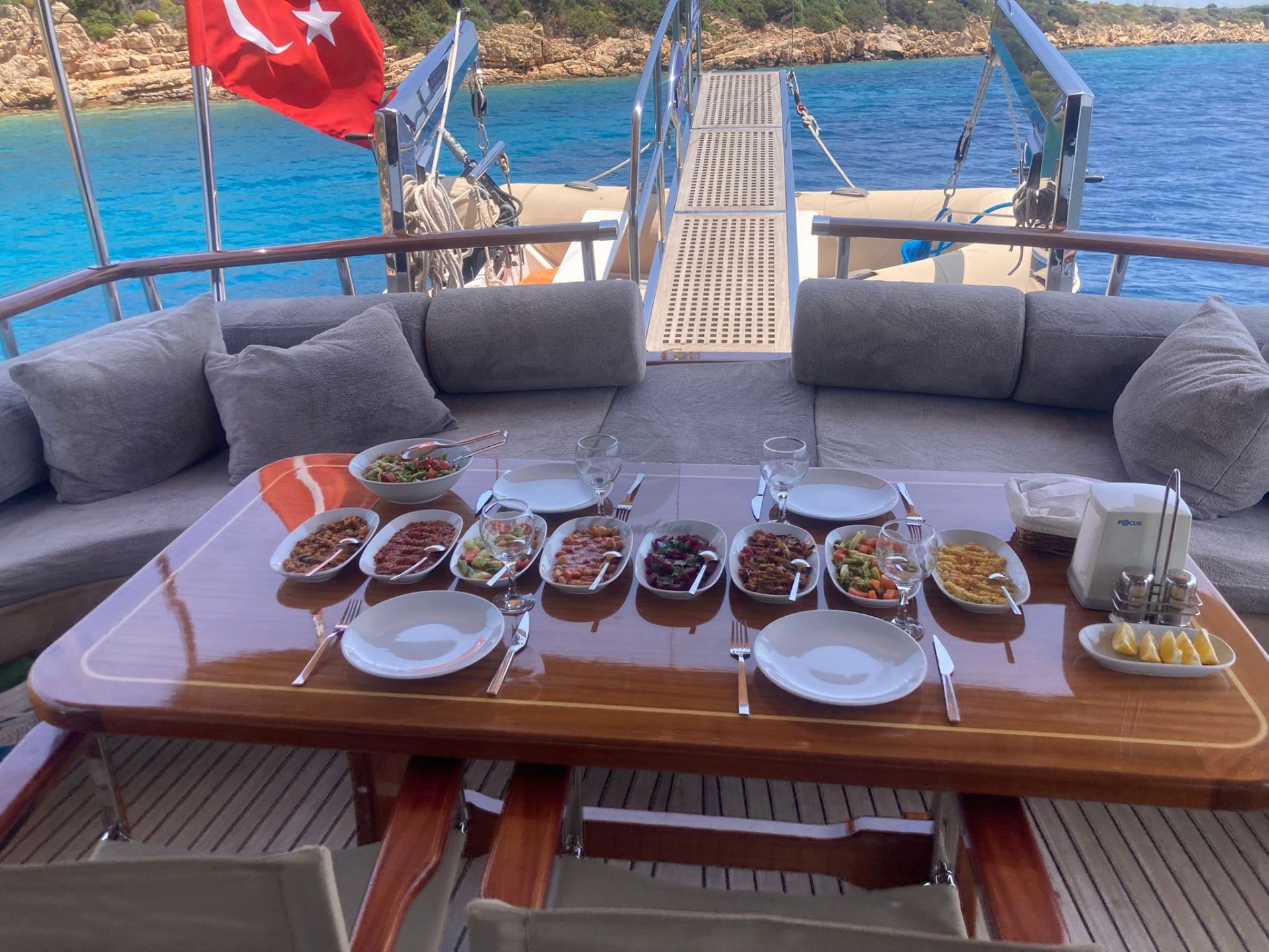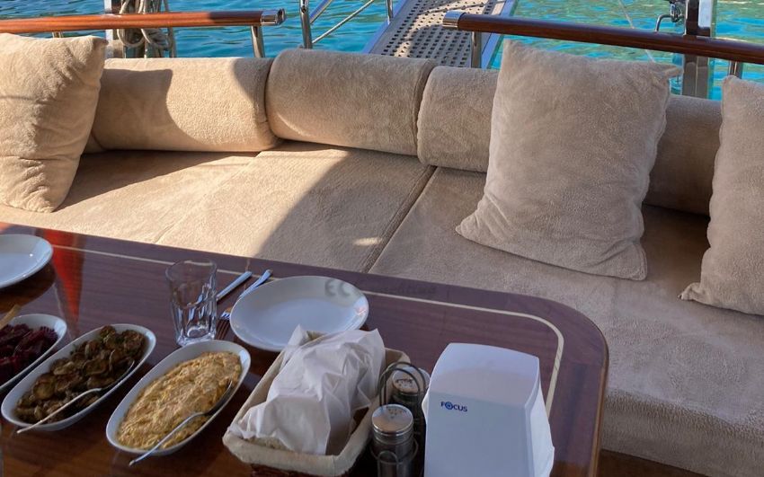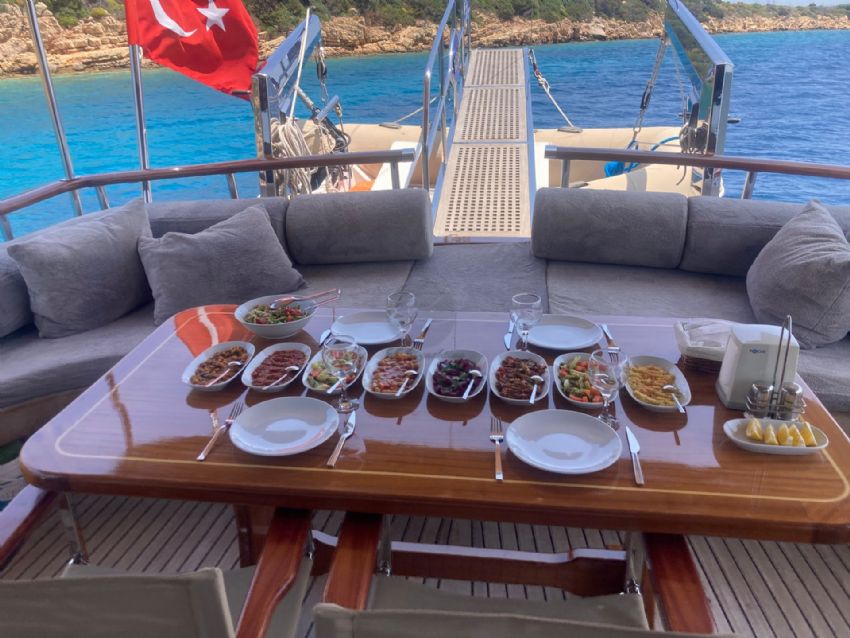 Balık tutma malzemeleri, Güneş tenteleri, Güneş yatakları, Güvertede duş, Deniz merdiveni