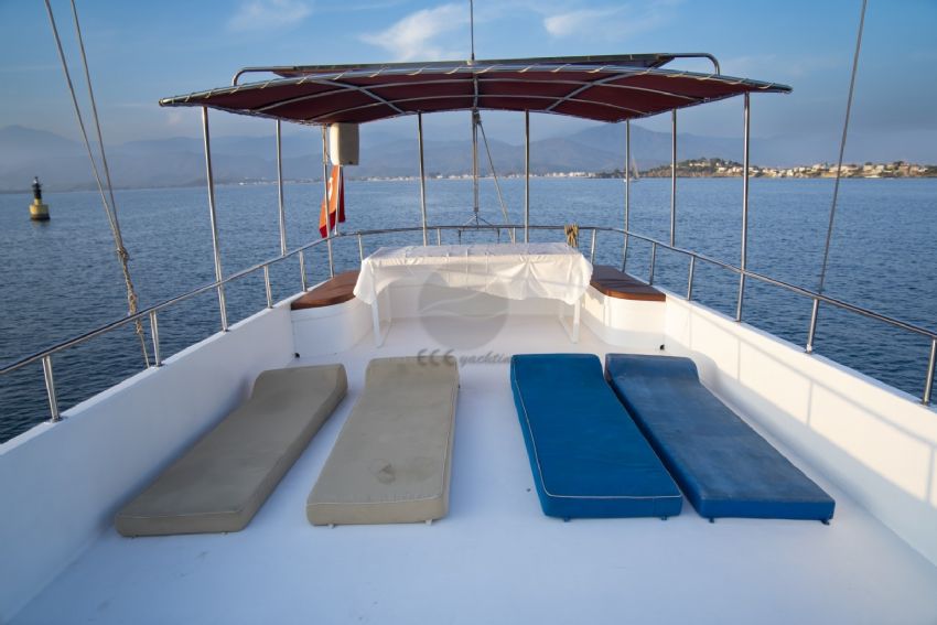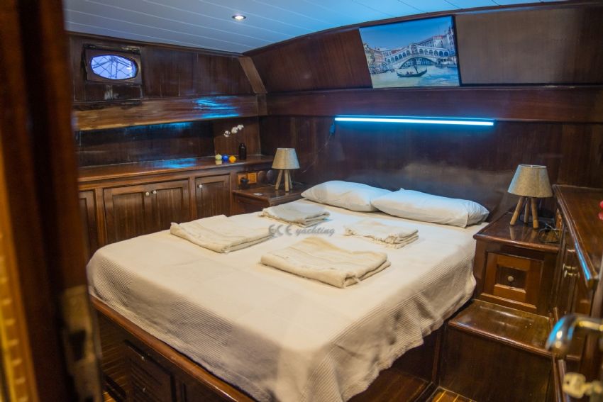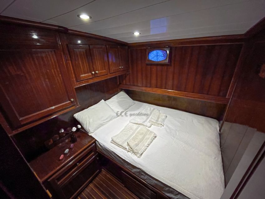 Gulet BOGAC KAPTAN, 2 Misafir kabini ile 1 double 1 master kabin olup 4 kişiliktir. Mürettebatın kabini, duş ve lavabosu ayrıdır. Ön loca, üst kat Flybridge (gölgelik), arka loca kıç deniz üstü olmak üzere bir çok yaşam alanımız mevcuttur. Tuvaletlerimiz ev tipi tuvalettir. Her odada ayrı ayrı banyo tuvalet bulunmaktadır. Her odada 220W priz mevcuttur. Teknemizde türk kahvesi makinesi, filtre kahve makinesi, gazlı mangal, buz dolabı, deepfreeze gibi birçok mutfak gereci mevcuttur. Ücretsiz olarak yararlanabileceğiniz paddle board, deniz yatağı, deniz gözlükleri ve şnorkel ekipmanları sunulmaktadır. Tavla, okey takımı, iskambil kağıdı gibi oyunlarımızda teknemizde mevcuttur. Teknemizde sürekli olarak 220W elektrik bulunmaktadır. 4 adet güneş paneli ile sürekli olarak elektrik üretimi yapılmaktadır. Teknemizde 12 adet güneşlenme minderi olup, geceleri güvertede yıldızların altında uyumak isteyen müşterilerimiz için imkan sağlamaktadır. Günübirlik veya konaklamalı kiralama taleplerinizi bekleriz.