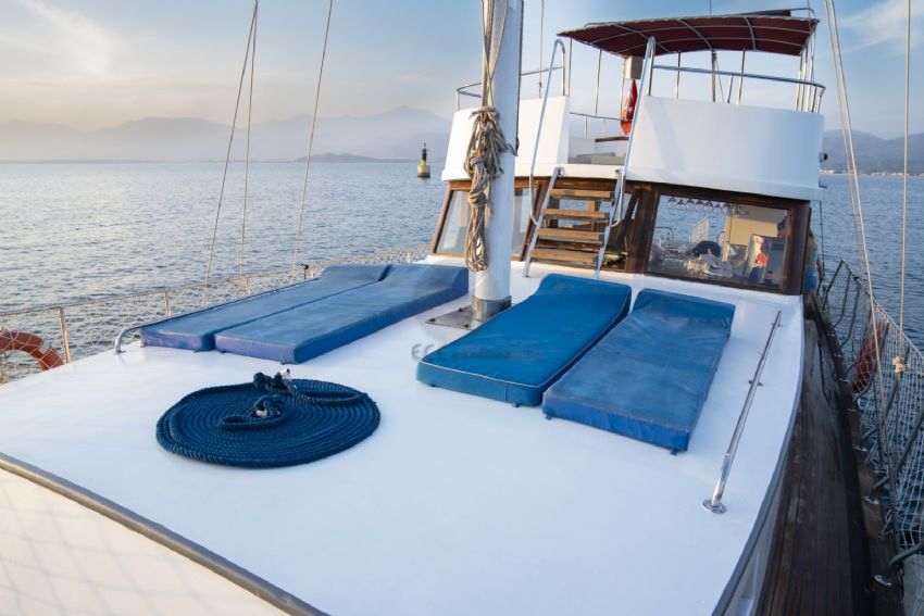 Şnorkel ekipmanları, Balık tutma malzemeleri, Güneş tenteleri, Güneş yatakları, Güvertede duş, Deniz merdiveni