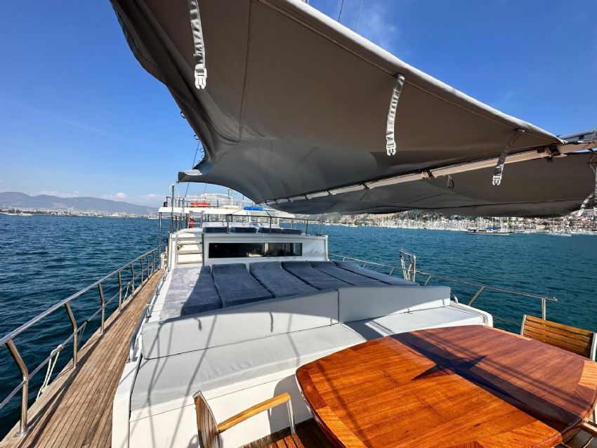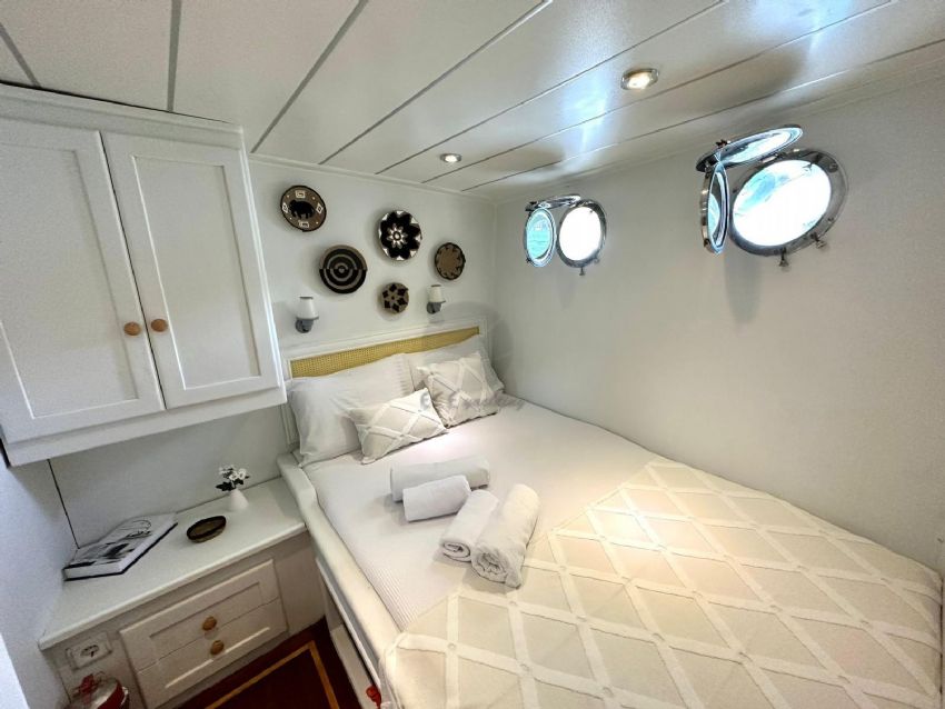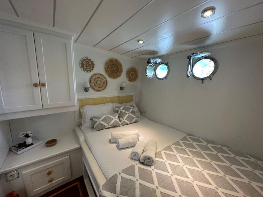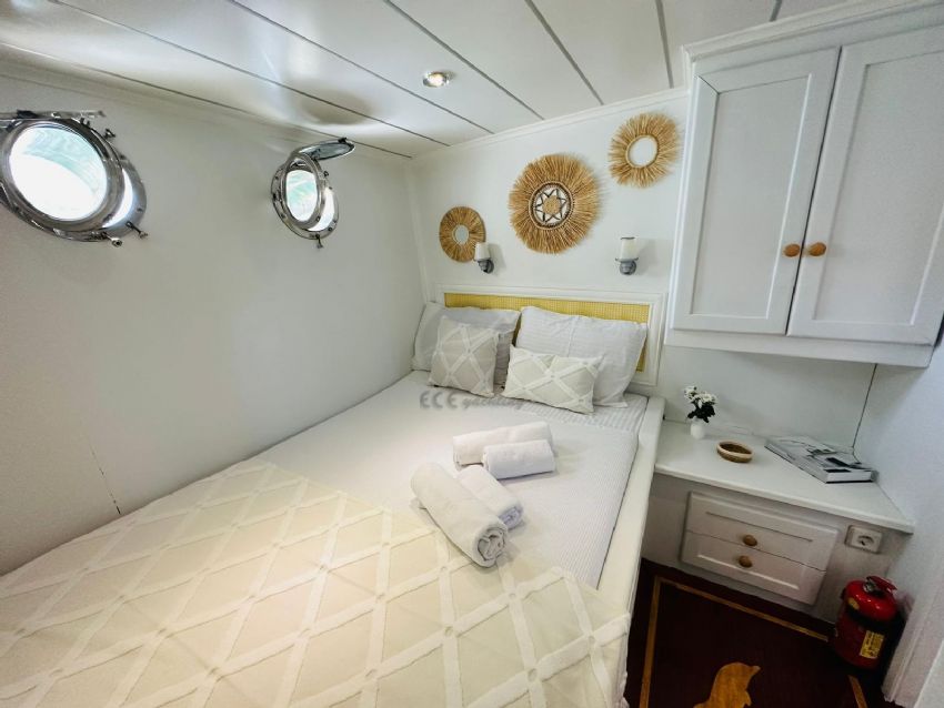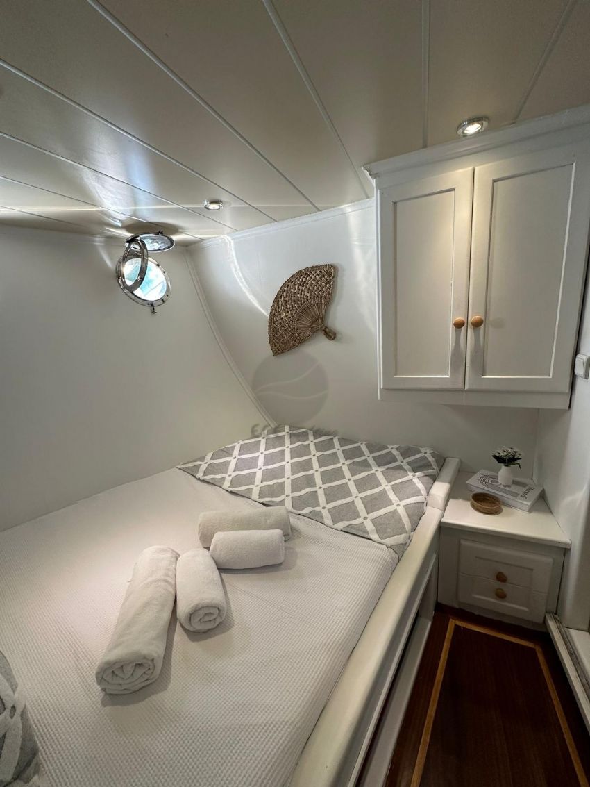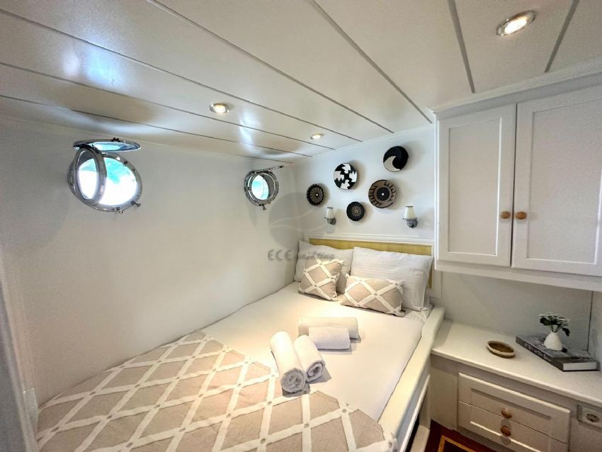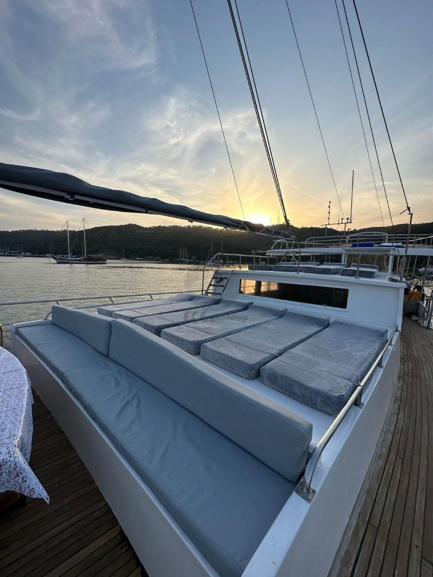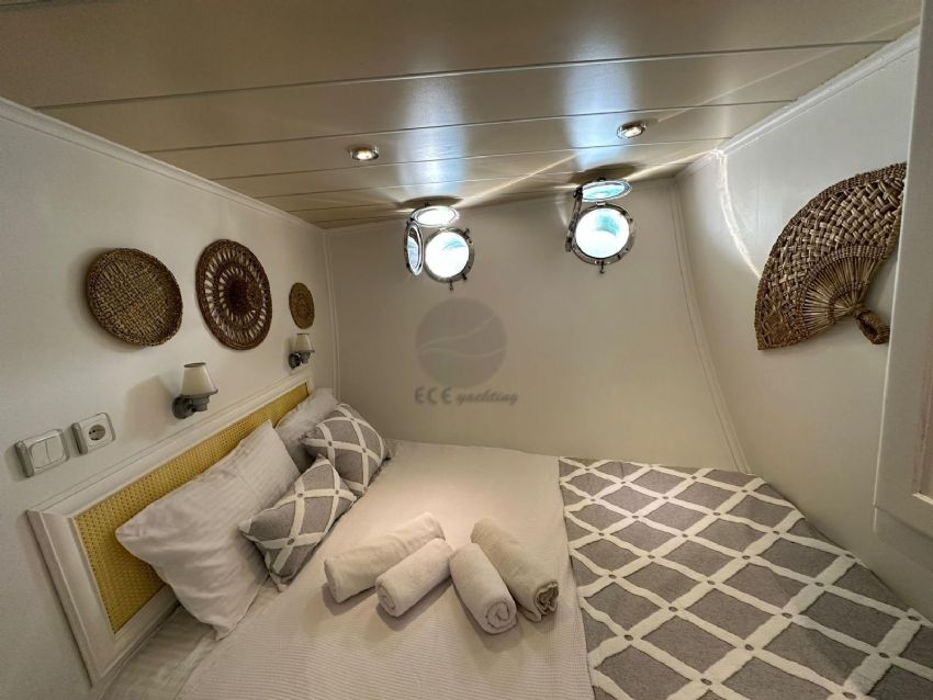 2024 yılında tamamlanmış olup tasarımı bohem ruhunu yansıtmaktadır ve Göcek’te sizleri bekliyor. Ferah ve modern tasarımıyla 5 kabinde toplam 10 misafiri ağırlayabilen guletimiz, konforlu bir mavi yolculuk için kiralanabilir.