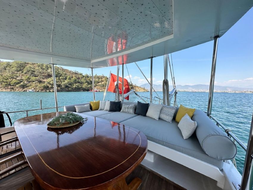 Guletimiz; deneyimli kaptanı, aşçısı ve gemicisi ile sizlere unutulmaz bir mavi yolculuk deneyimi sunar. Göcek’in eşsiz koylarında konaklayacağınız bu tatilde, bohem tarzıyla keyifli atmosferinin tadını çıkarabilirsiniz.