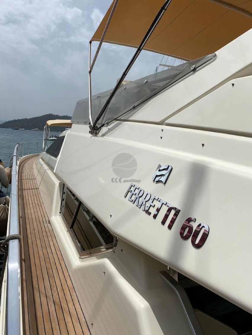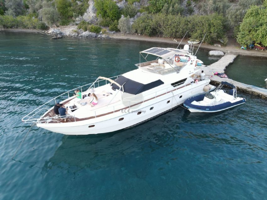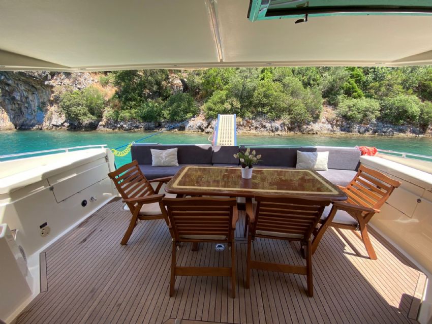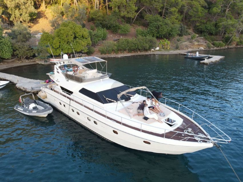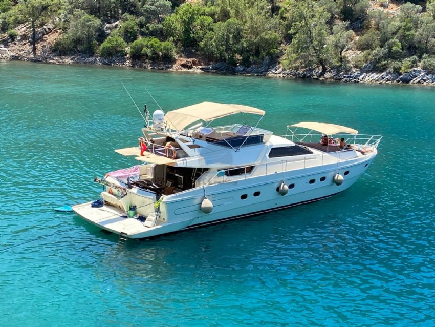 Göcek’in kristal berraklığındaki sularında 2022 model Ferretti 60 Bonus motoryat ile lüks ve konforu bir arada yaşayabileceğiniz eşsiz bir mavi yolculuk sizi bekliyor. 20 metre uzunluğunda ve 5 metre genişliğindeki bu şık yat, modern tasarımı ve ferah yaşam alanları ile 3 kabin ve 3 banyoya sahiptir. Toplamda 6 kişilik konaklama kapasitesiyle, aileler ve arkadaş grupları için idealdir. Fethiye Körfezi’nin göz kamaştıran manzaraları eşliğinde 12 Adalar bölgesini keşfederken, profesyonel ekibimiz sizlere kişiselleştirilmiş servis ve lezzetli menüler sunar. Teknemizde klima, Wi-Fi, TV, tam donanımlı mutfak ve su sporları ekipmanları gibi her ayrıntı düşünülmüş olup, tatilinizi unutulmaz kılmak için konfor ve keyfi bir arada sunar. Ferretti 60 Bonus, 3 ila 4 gecelik kısa süreli mavi yolculuklar için de oldukça uygundur.
