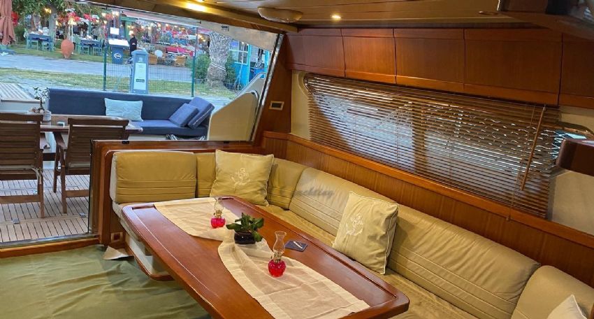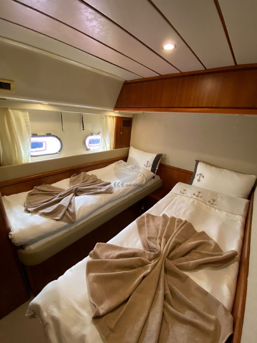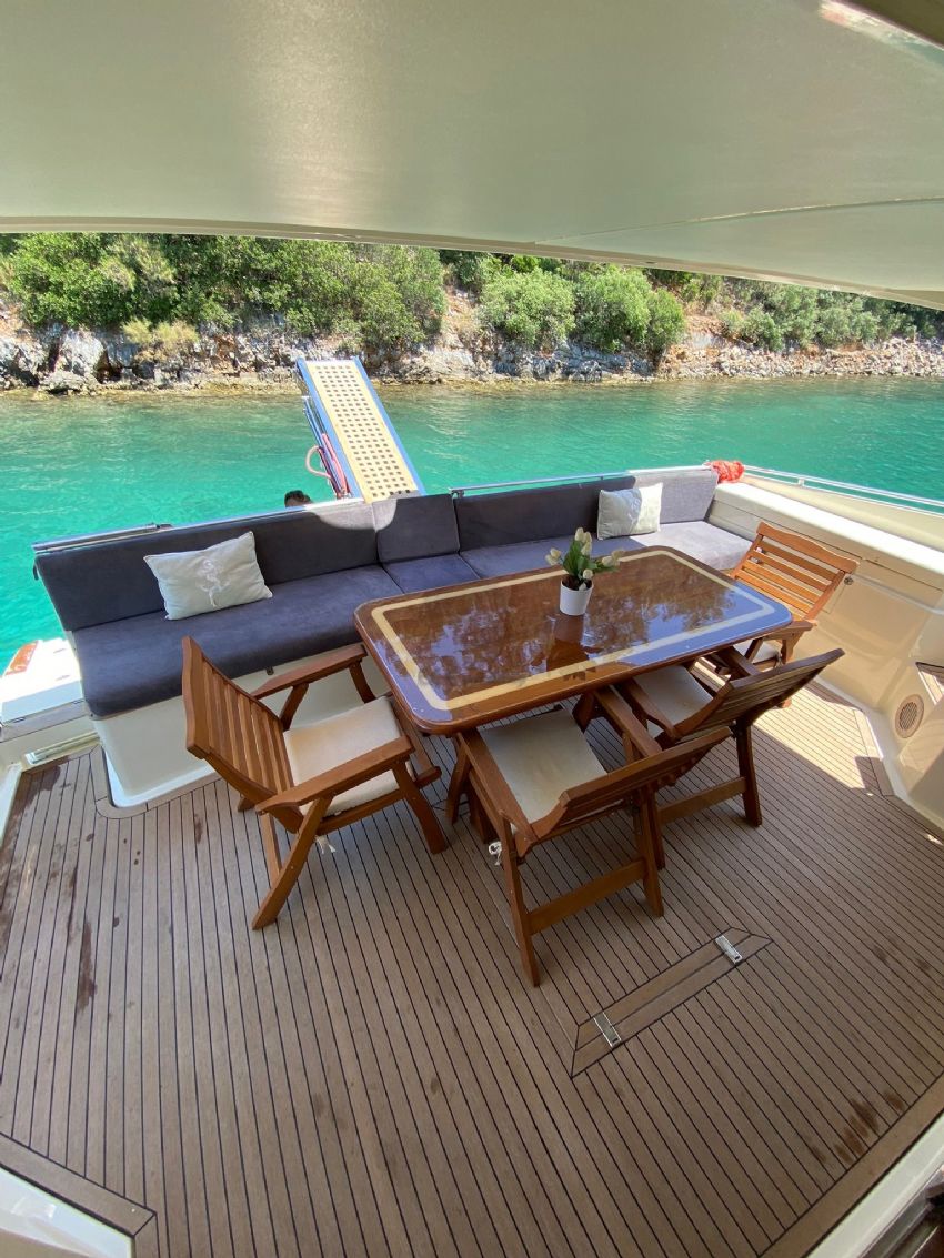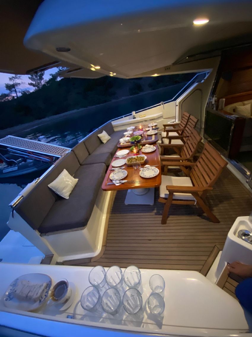 Göcek’in kristal berraklığındaki sularında 2022 model Ferretti 60 Bonus motoryat ile lüks ve konforu bir arada yaşayabileceğiniz eşsiz bir mavi yolculuk sizi bekliyor. 20 metre uzunluğunda ve 5 metre genişliğindeki bu şık yat, modern tasarımı ve ferah yaşam alanları ile 3 kabin ve 3 banyoya sahiptir. Toplamda 6 kişilik konaklama kapasitesiyle, aileler ve arkadaş grupları için idealdir. Fethiye Körfezi’nin göz kamaştıran manzaraları eşliğinde 12 Adalar bölgesini keşfederken, profesyonel ekibimiz sizlere kişiselleştirilmiş servis ve lezzetli menüler sunar. Teknemizde klima, Wi-Fi, TV, tam donanımlı mutfak ve su sporları ekipmanları gibi her ayrıntı düşünülmüş olup, tatilinizi unutulmaz kılmak için konfor ve keyfi bir arada sunar. Ferretti 60 Bonus, 3 ila 4 gecelik kısa süreli mavi yolculuklar için de oldukça uygundur.