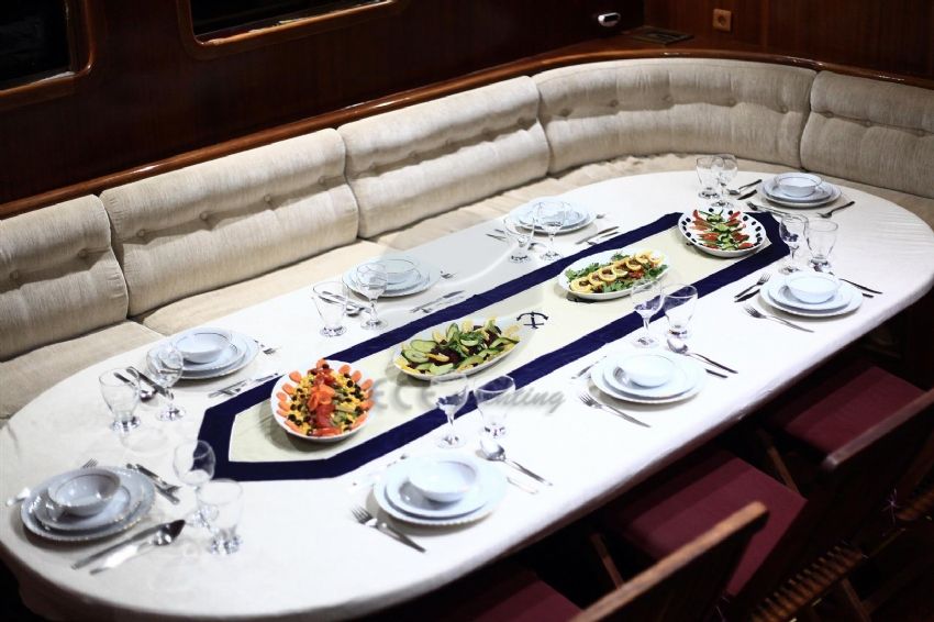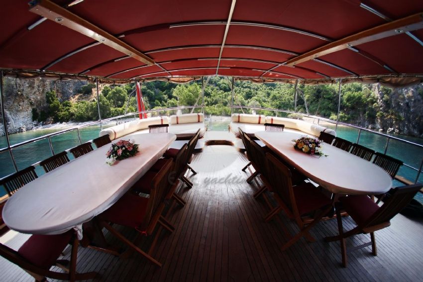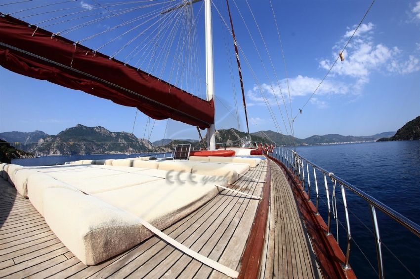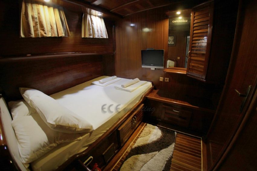 2012 yılında revize edilen teknemiz, günümüz kalite standartlarıyla mavi yolculuk hizmeti vermeye devam etmektedir. Caferoğlu 7, ahşap guletler içinde çok kabinli teknelerin az olduğu ülkemizde, 11 kabiniyle öncelikli teknelerimizin arasında yer almaktadır. Oldukça geniş ve konforlu yaşam alanlarıyla da dikkat çeken teknemizde, 22 kişiye kadar olan nezih gruplarınız ağırlanabilmektedir. 39 metre uzunluğundaki teknemizde, hava ve deniz koşulları uygun olduğunda yelken seyri de yapabilirsiniz. Her biri alanında deneyimli ve güler yüzlü mürettebatımızın, misafir memnuniyeti odaklı servis anlayışıyla tatilinizden unutulmaz anılarla ayrılacaksınız. Caferoğlu 7 Yatı.