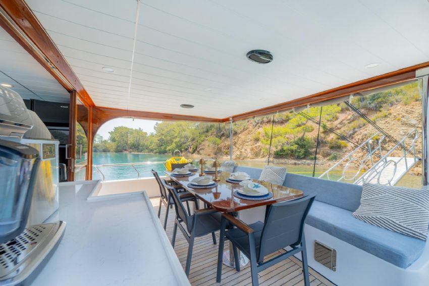 2022 yılında yapılmış olan Cagay Royal guletimiz 2024 yılında yenilenmiş olup, 3 kabine sahiptir. 1 Master ve 2 Double kabini bulunan guletimiz 6 kişi konaklama kapasitesine sahiptir. Cagay Royal guletimiz 18 metre uzunluğunda ve 5,75 metre genişliğindedir. Güler yüzlü 3 mürettebatıyla siz değerli misafirlerimize hizmet vermektedir. Mürettebatımız 1 adet kaptan,1 adet aşçı ve 1 adet gemiciden oluşmaktadır. Cagay Royal guletimizde müsaitlik durumuna göre minimum 3 gece kiralama yapmaya imkan sağlamaktadır.