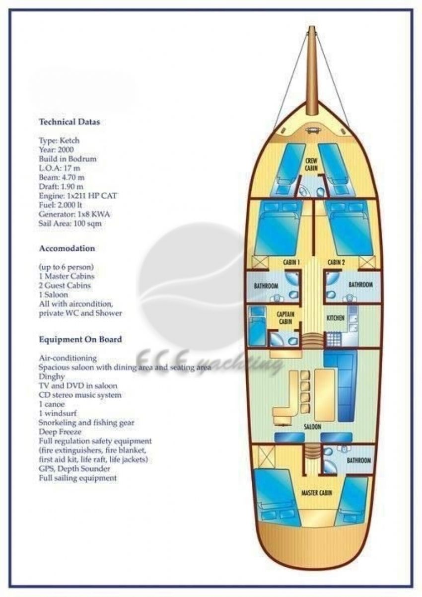 17 metre uzunluğundaki teknemiz, ekonomik kategoride mavi yolculuk hizmeti vermektedir. 3 double kabini olan teknemiz, deneyimli ekibiyle 6 kişiye kadar olan gruplarınızı ağırlayabilmektedir. Çağselen mavi tur tatilinizi ekonomik ama rahat bir teknede geçirmek için öncelikli tercihlerinizden olacaktır. Çağselen Yatı