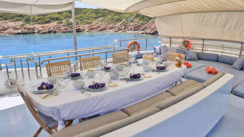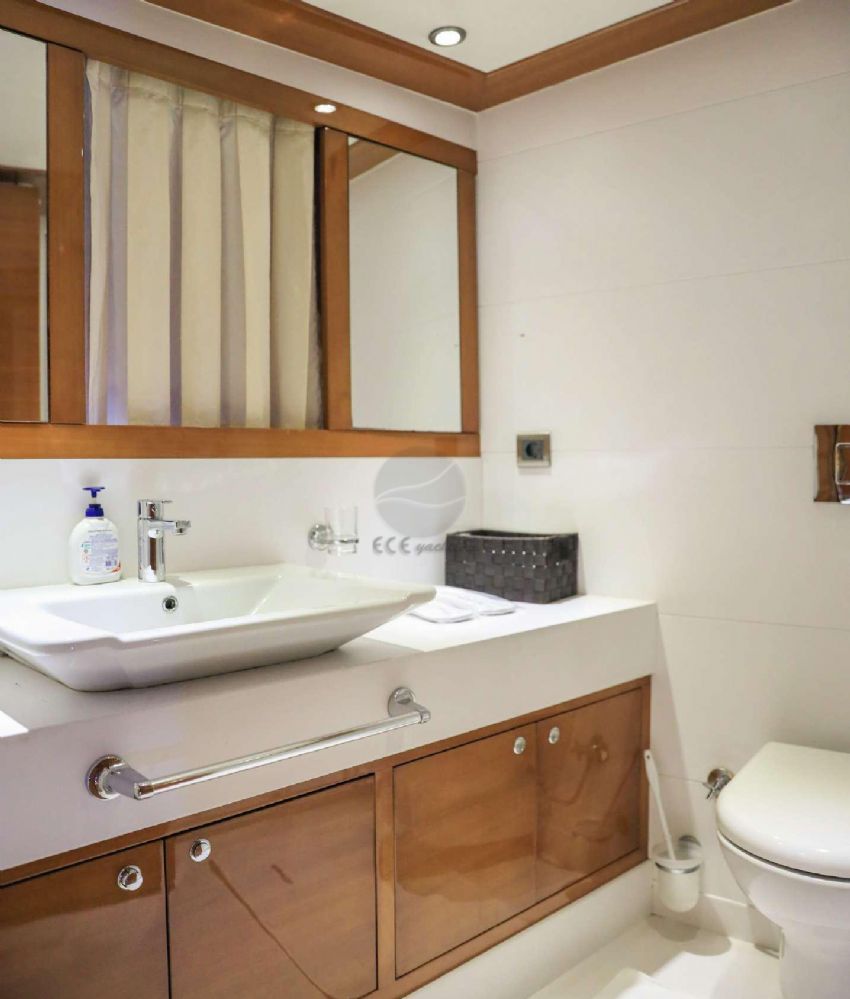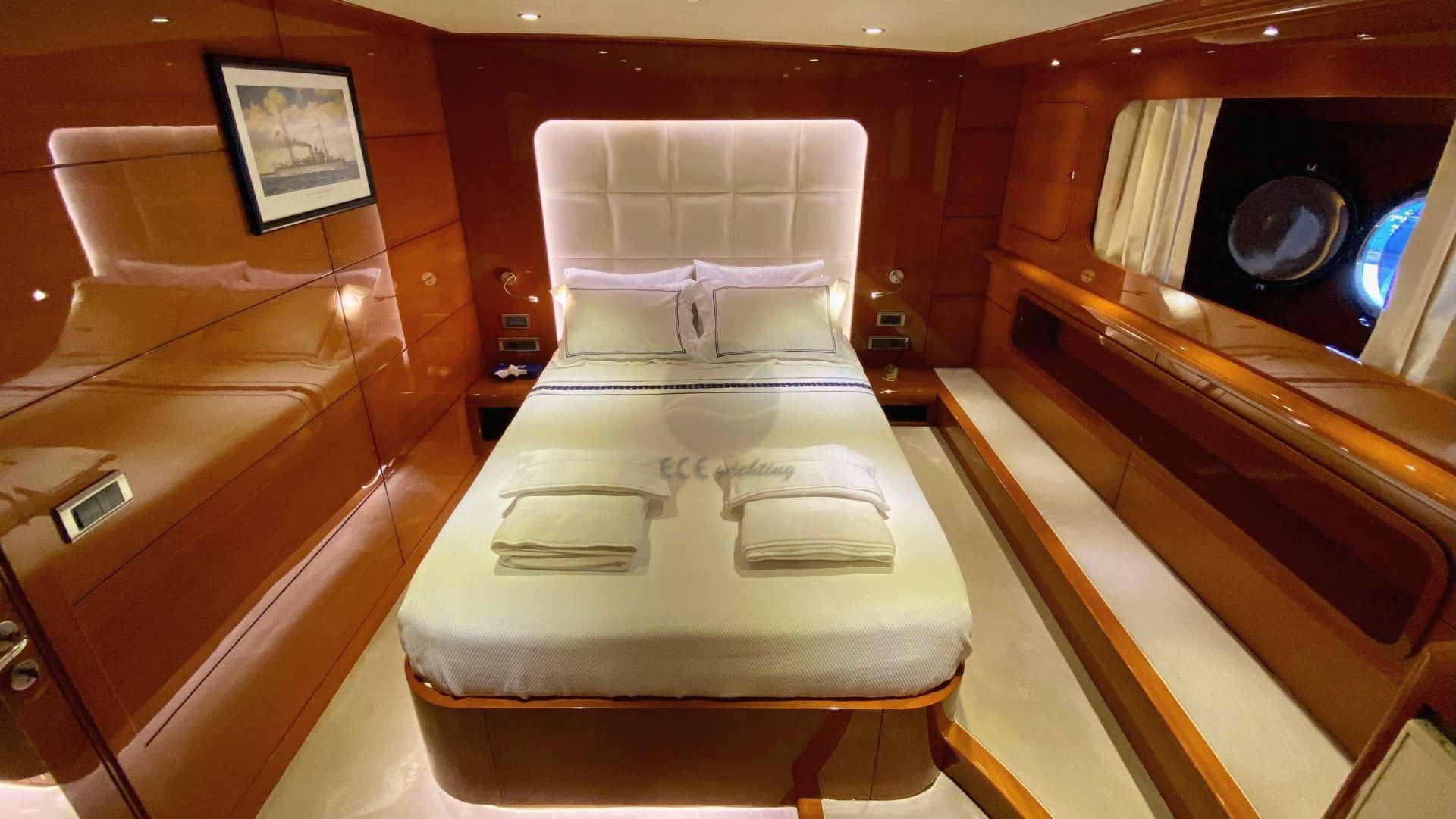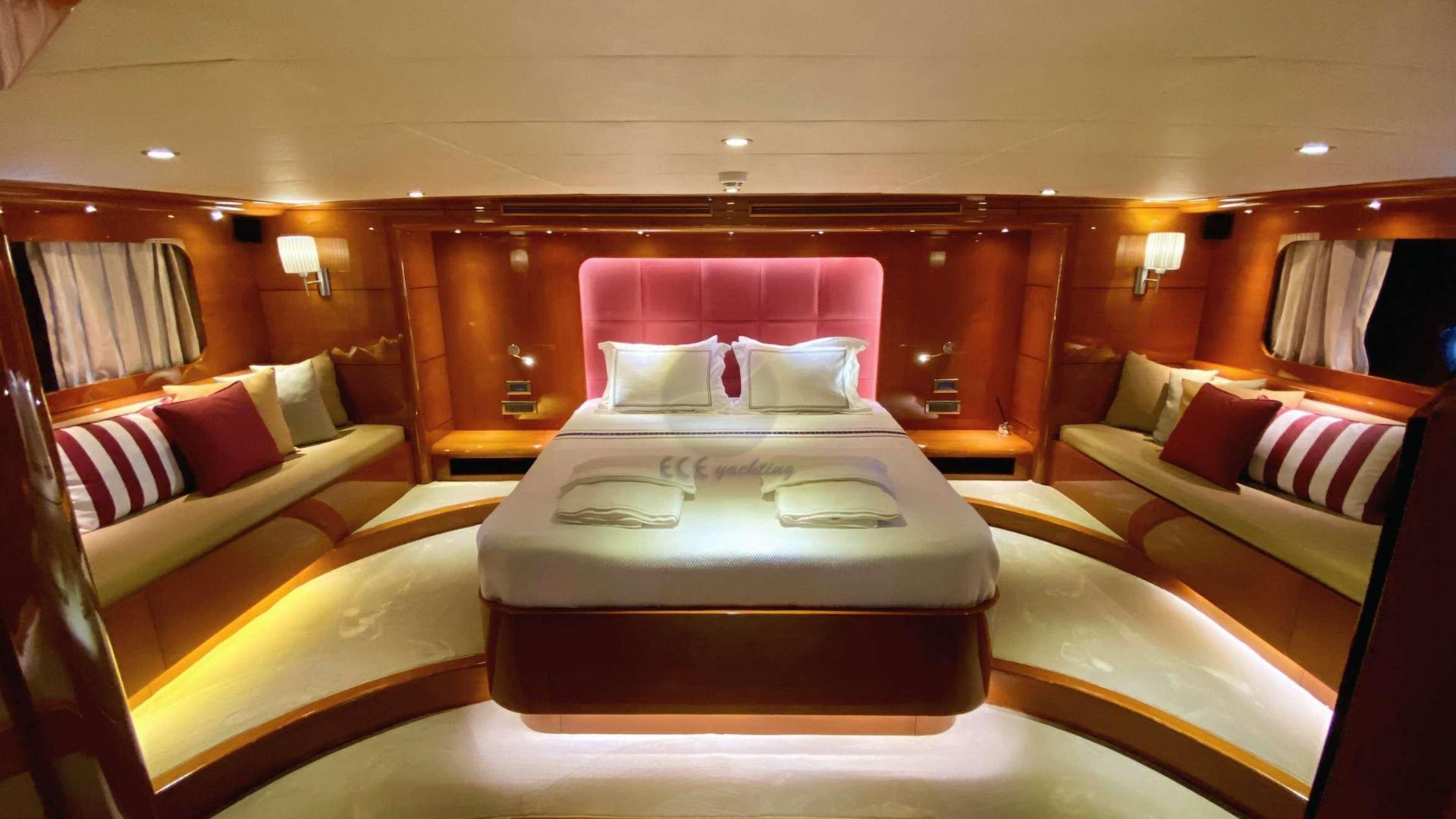 14 Kişi kapasiteli ultra lüks yatımız denizde kuğu gibi süzülmesiyle görenleri kendine hayran bırakmaktadır. Canaria, 2013 yılında denize indirilmiş ve tüm ekipman ve donanımın yapımında son teknoloji kullanılmıştır. 37 metre uzunluğundaki ultra lüks yatımızda 1 master, 1 vip, 2 double ve 2 triple kabin bulunmaktadır. Geniş yaşam alanları ve kabinlerinin yanı sıra, çok şık tasarlanmış olan salonumuzda konforlu bir oturma grubu ve tv ünitesi ile serin havalarda kullanılmak üzere yemek masası bulunmaktadır. Flybridge dediğimiz 2. kat teknemizin en büyük avantajlarından olup, bu alanda rahatça güneşlenebilir, içeceğinizi keyifle yudumlayabilir veya seyir sırasında dinlenebilirsiniz. Türk karasularında internet bağlantısı bulunan ultra lüks yatımız ile mavi yolculuk tatilinizde kalite ve konforu, deneyimli ekibinin birinci sınıf hizmetiyle de keyifli hissedeceksiniz.