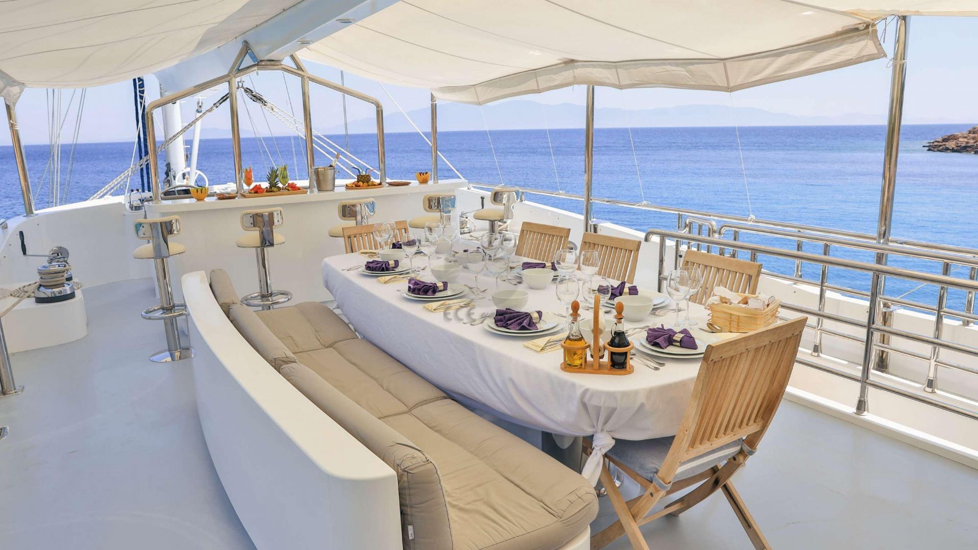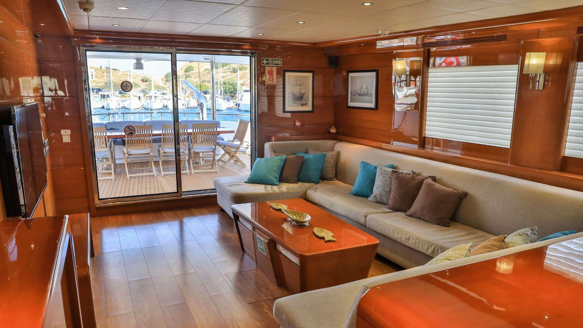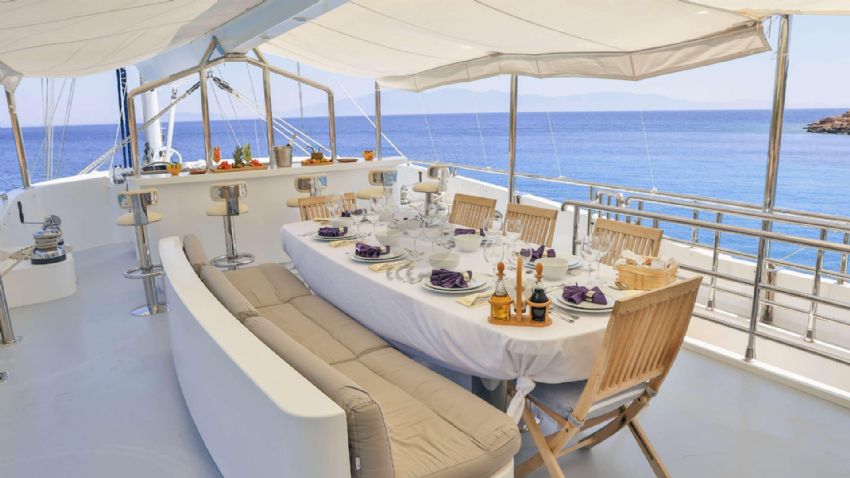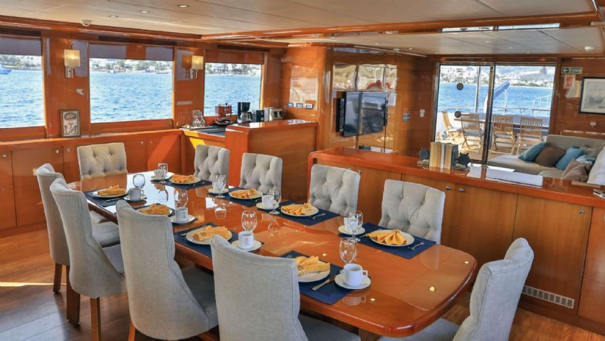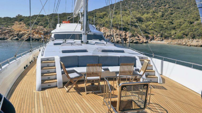 14 Kişi kapasiteli ultra lüks yatımız denizde kuğu gibi süzülmesiyle görenleri kendine hayran bırakmaktadır. Canaria, 2013 yılında denize indirilmiş ve tüm ekipman ve donanımın yapımında son teknoloji kullanılmıştır. 37 metre uzunluğundaki ultra lüks yatımızda 1 master, 1 vip, 2 double ve 2 triple kabin bulunmaktadır. Geniş yaşam alanları ve kabinlerinin yanı sıra, çok şık tasarlanmış olan salonumuzda konforlu bir oturma grubu ve tv ünitesi ile serin havalarda kullanılmak üzere yemek masası bulunmaktadır. Flybridge dediğimiz 2. kat teknemizin en büyük avantajlarından olup, bu alanda rahatça güneşlenebilir, içeceğinizi keyifle yudumlayabilir veya seyir sırasında dinlenebilirsiniz. Türk karasularında internet bağlantısı bulunan ultra lüks yatımız ile mavi yolculuk tatilinizde kalite ve konforu, deneyimli ekibinin birinci sınıf hizmetiyle de keyifli hissedeceksiniz.