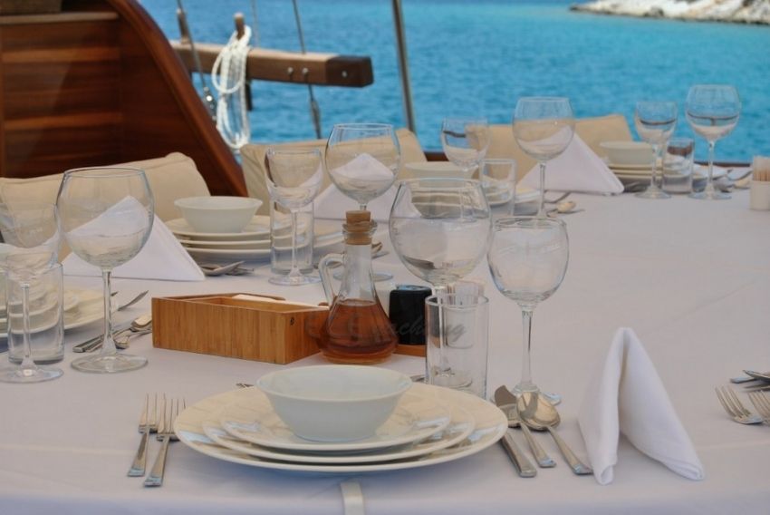 Kaptan, ahçı, 2 gemici, 2 servis elemanı