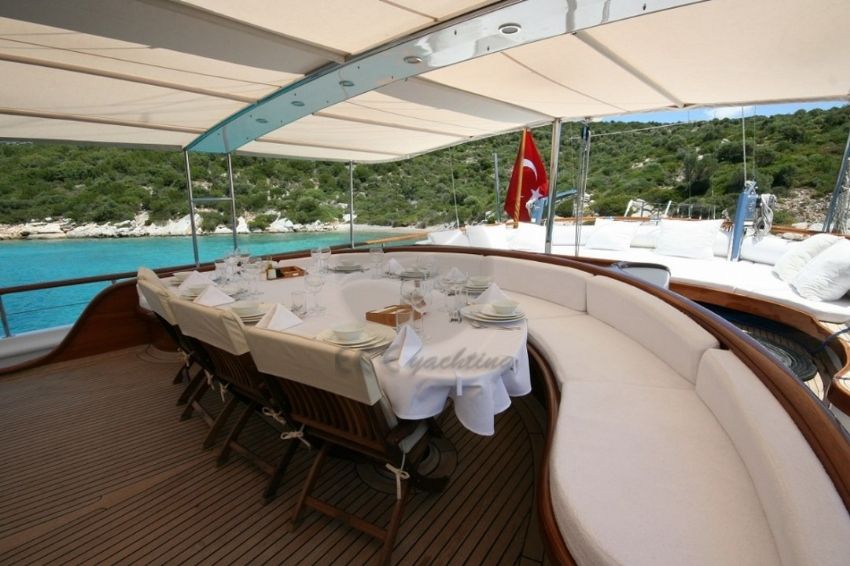 2008 yılında denize indirilen ultra lüks kategorideki teknemiz, 6 kabiniyle 12 kişiye kadar olan nezih gruplarınızı ağırlayabilme kapasitesindedir. Geniş ve konforlu yaşam alanlarıyla dikkat çeken yatımızda her biri alanında deneyimli 6 kişilik ekibimiz, misafir memnuniyeti odaklı servis vermektedir. Caner 4 teknemizde, hava ve deniz şartları uygun olduğunda ful yelken donanımı ile yelken seyrinin de keyfini çıkarabilirsiniz. Ege ve Akdeniz'de mavi tur yapma imkanı bulabileceğiniz teknemizde Türk karasularında 15 GB internet erişimi de bulunmaktadır. Caner 4 Yatı.
