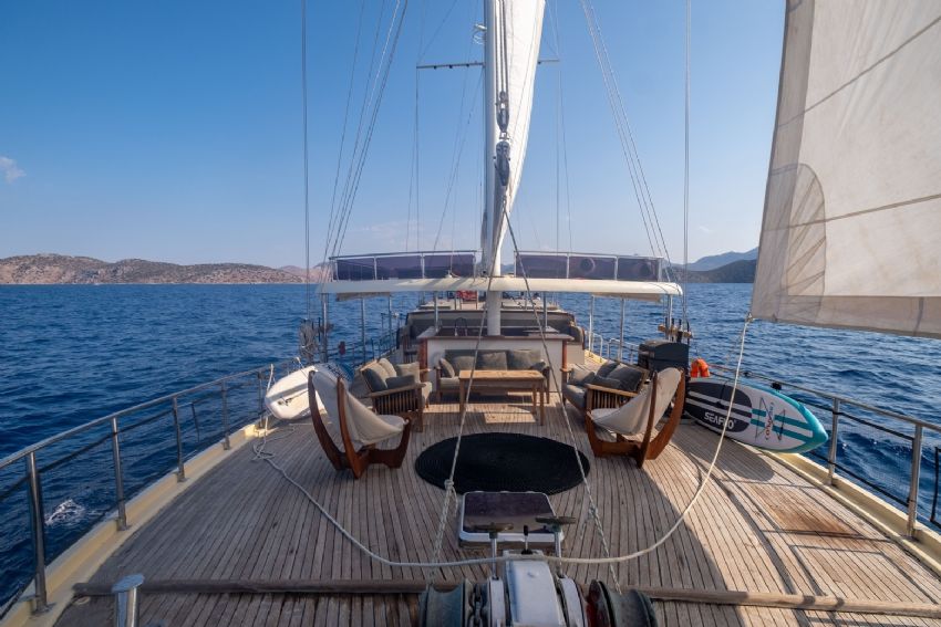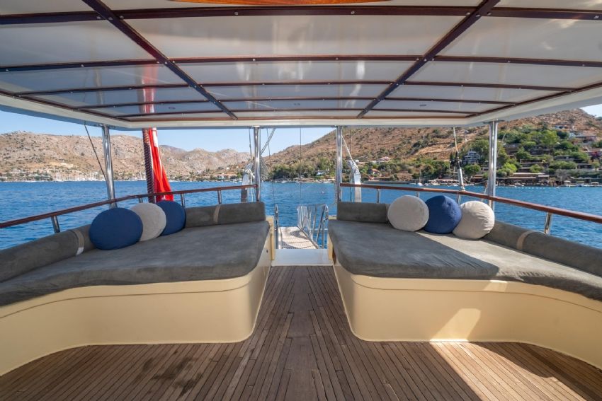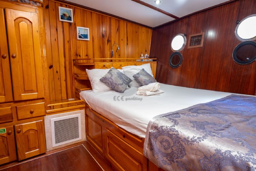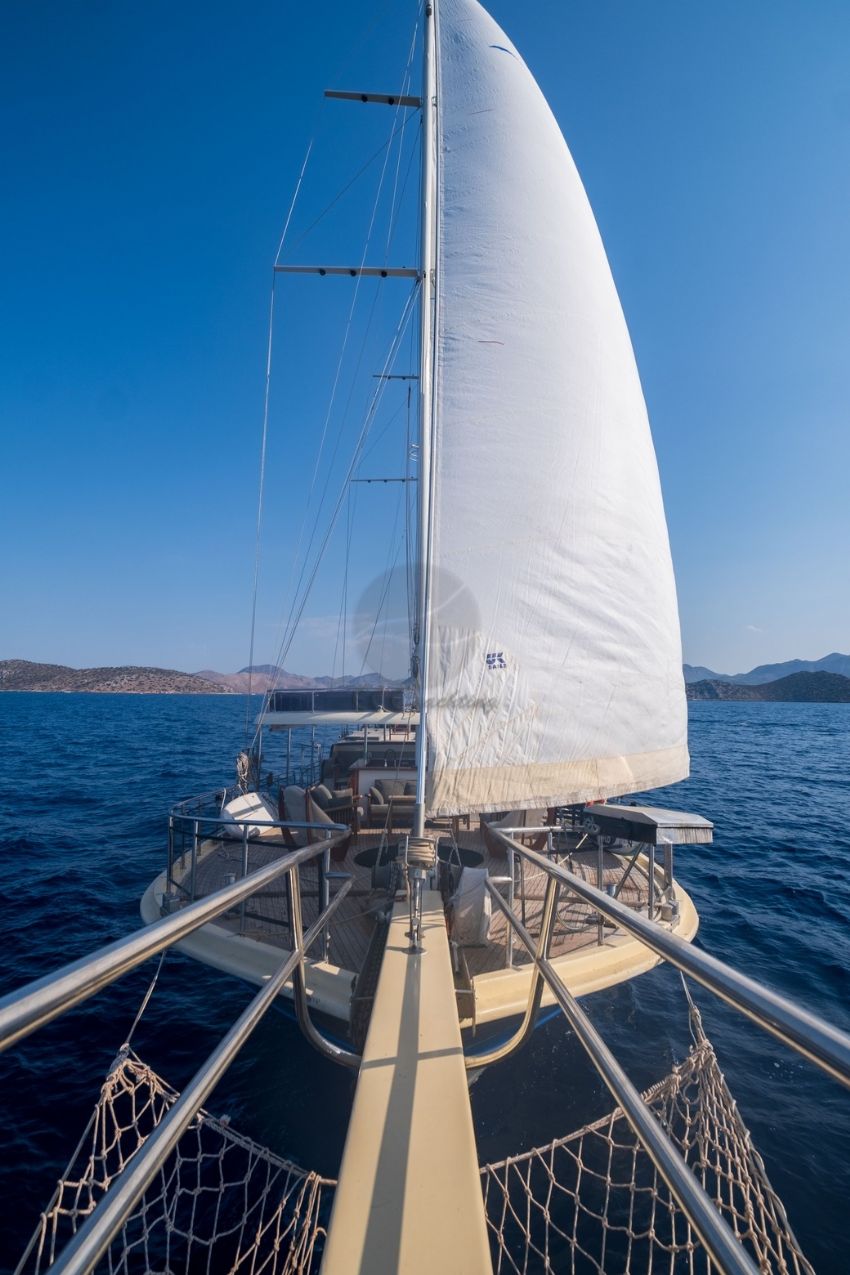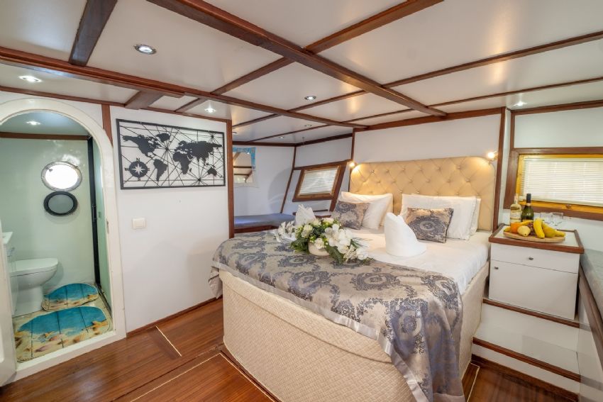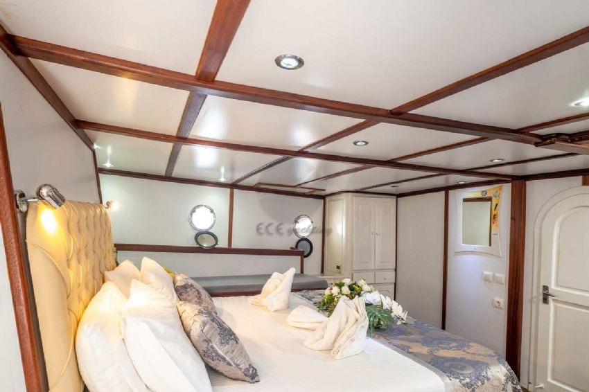 2010 yılında revize edilen teknemiz, 7 klimalı ve konforlu kabiniyle mavi yolculuk hizmeti vermektedir. Oldukça geniş ve konforlu yaşam alanlarıyla dikkat çeken teknemizde, 16 kişiye kadar olan nezih gruplarınızı ağırlayabilmekteyiz. Hava ve deniz koşulları uygun olduğunda yelken seyri de yapabileceğiniz teknemizde, her biri alanında deneyimli ve güler yüzlü mürettebatımız misafir memnuniyeti odaklı hizmet vermektedir. Lüks kategoride yer alan teknemiz emsallerine göre avantajlı fiyatlarıyla hizmetinizdedir.