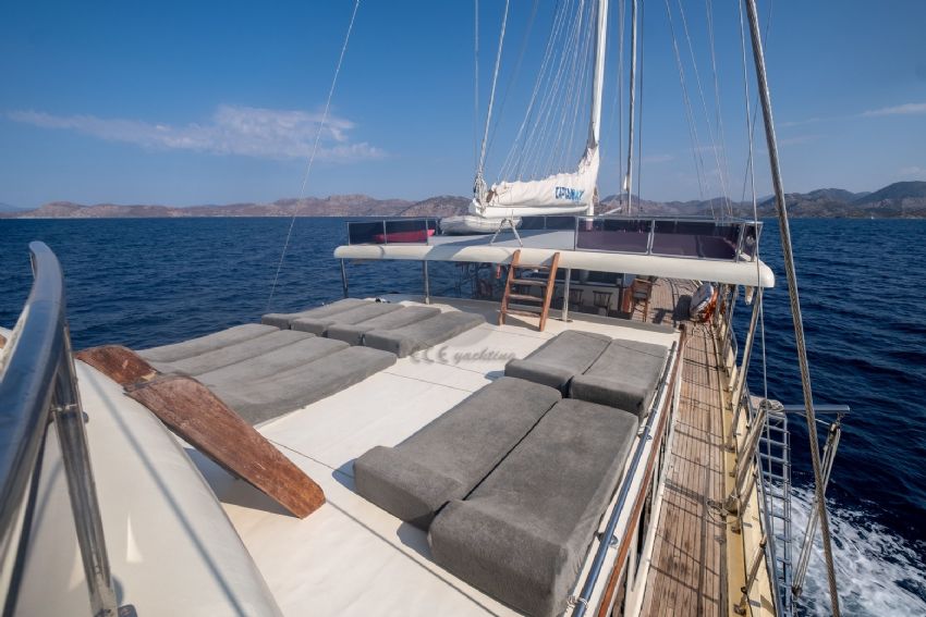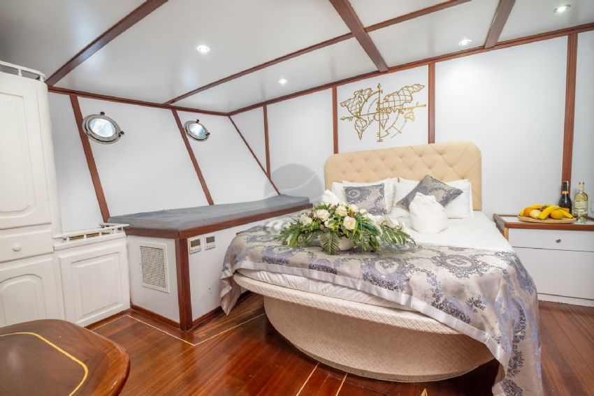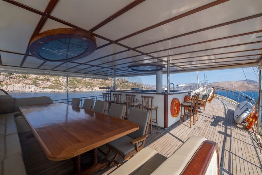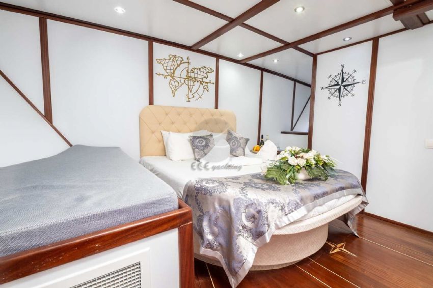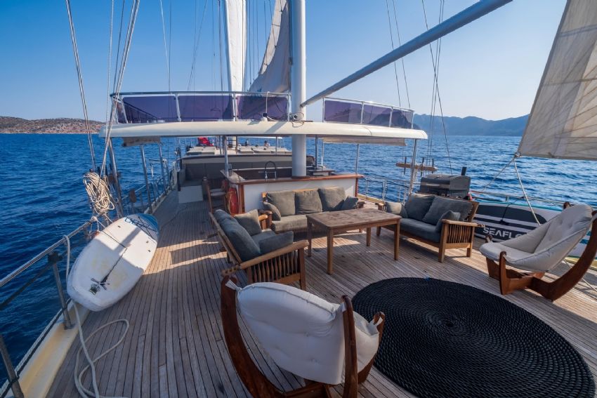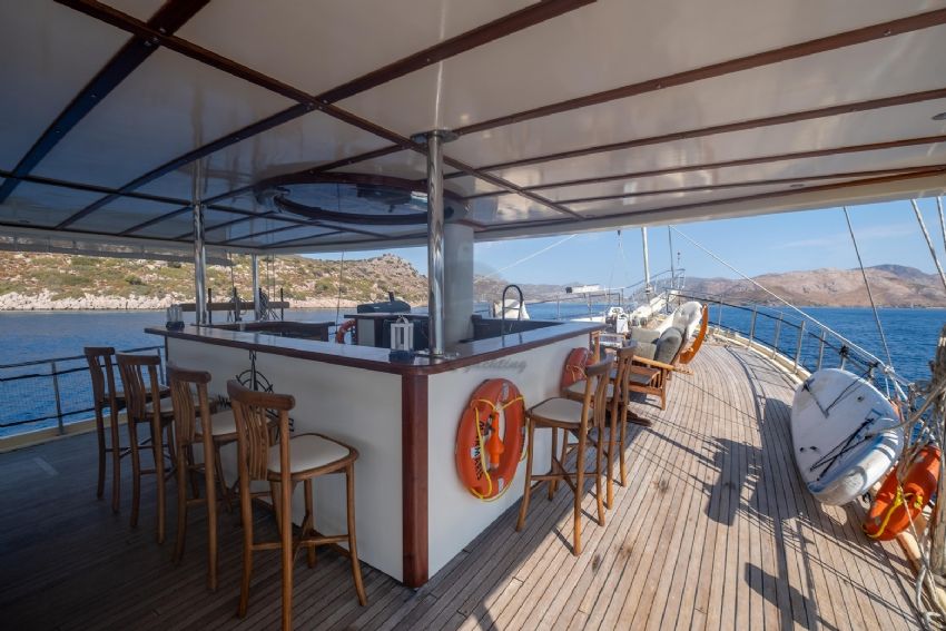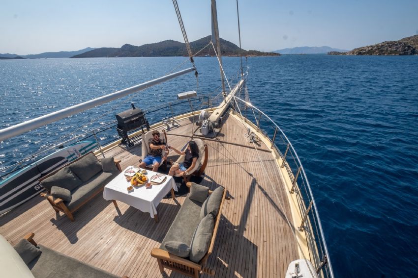 2010 yılında revize edilen teknemiz, 7 klimalı ve konforlu kabiniyle mavi yolculuk hizmeti vermektedir. Oldukça geniş ve konforlu yaşam alanlarıyla dikkat çeken teknemizde, 16 kişiye kadar olan nezih gruplarınızı ağırlayabilmekteyiz. Hava ve deniz koşulları uygun olduğunda yelken seyri de yapabileceğiniz teknemizde, her biri alanında deneyimli ve güler yüzlü mürettebatımız misafir memnuniyeti odaklı hizmet vermektedir. Lüks kategoride yer alan teknemiz emsallerine göre avantajlı fiyatlarıyla hizmetinizdedir.