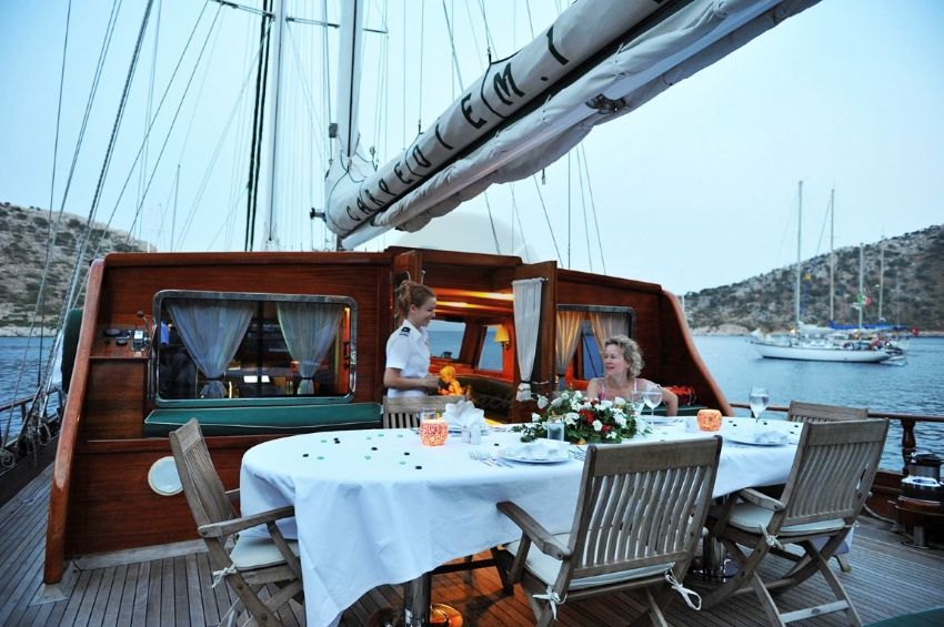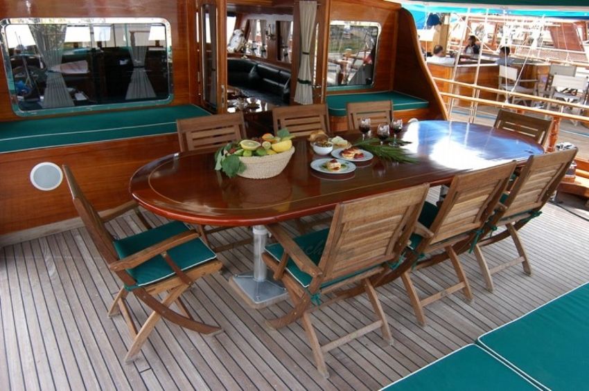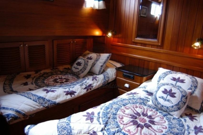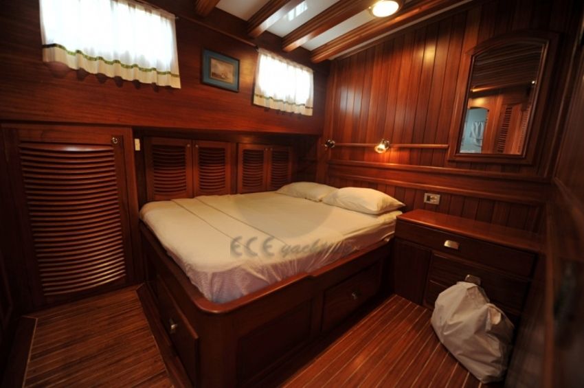 2003 yılında yapılan ve 2013 yılında revize edilerek çok daha şık ve çok daha konforlu hale gelen teknemiz, 4 kabiniyle mavi yolculuk hizmeti sunmaktadır. 27 metre uzunluğundaki teknemizde, deneyimli ve güler yüzlü 5 kişilik mürettebatımız hizmetinizdedir. Hava ve deniz koşulları uygun olduğunda yelken seyri de yapabileceğiniz teknemizde, 8 kişiye kadar olan nezih gruplarınızı ağırlayabilmekteyiz. Carpe diem 1 Gulet Yatı