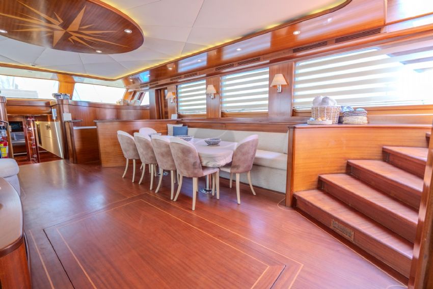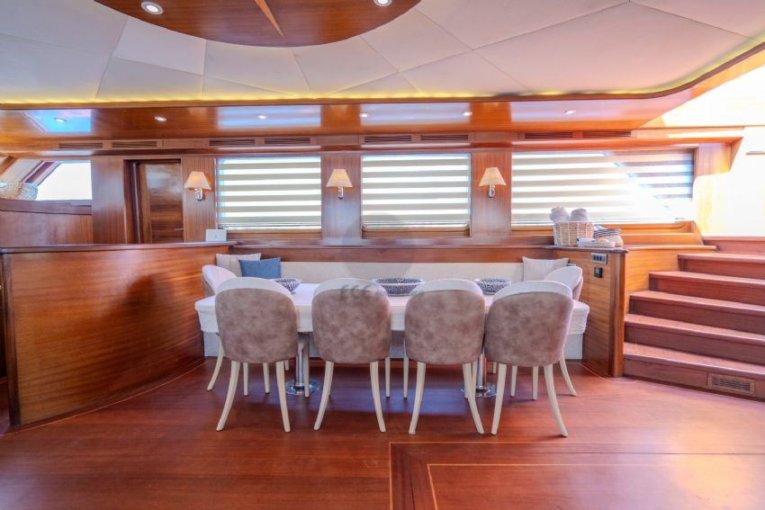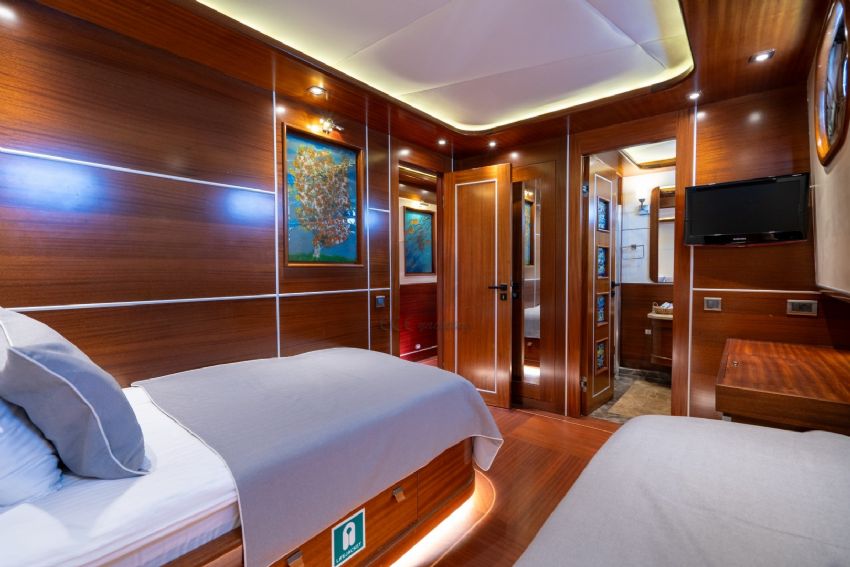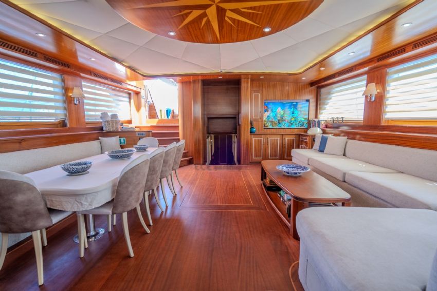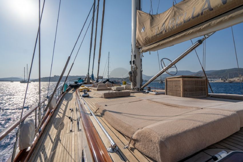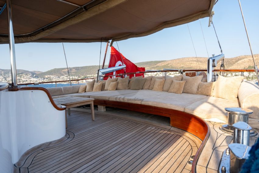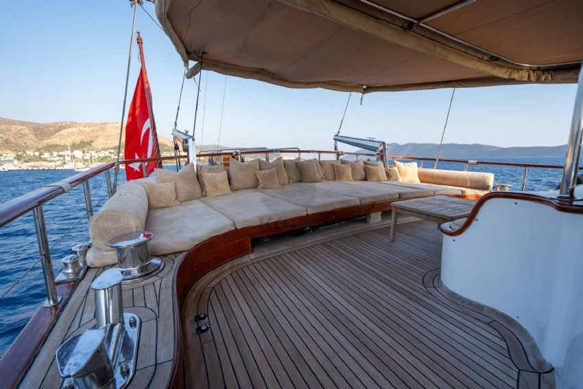 Denizin üzerinde bir ahşap teknede ihtiyaç duyabileceğiniz tüm detaylar ultra lüks teknemizde bulunmaktadır. 42 metre uzunluğunda ve 6 kabinli teknemiz 12 kişiye kadar olan nezih misafirlerimizi ağırlayabilme kapasitesine sahiptir. Yurt içinden ve yurt dışından bir çok ünlü ismi ağırlayan teknemizde, her biri alanında deneyimli kusursuz hizmet sunan 7 personel çalışmaktadır.