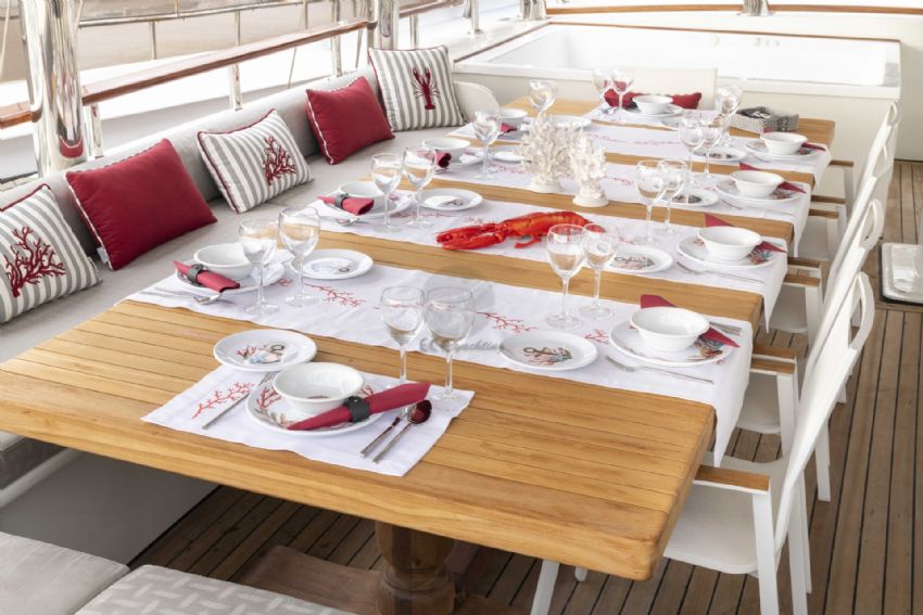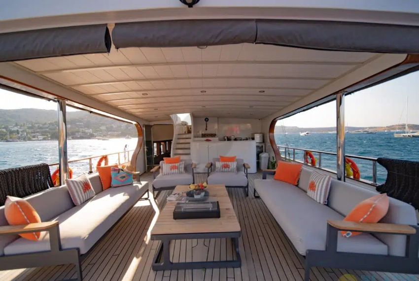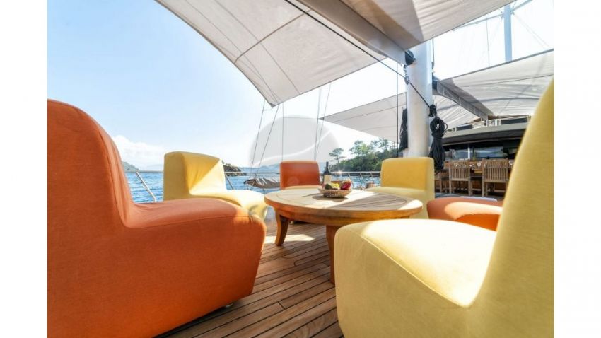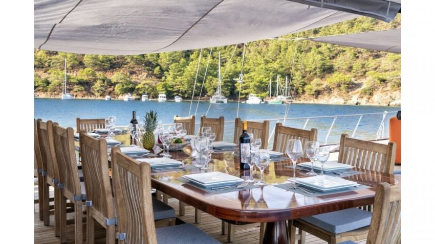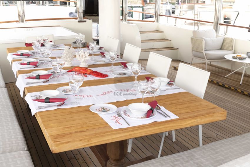 Şnorkel ekipmanları, Balık tutma malzemeleri, Güneş tenteleri, Güneş yatakları, Güvertede duş, Deniz merdiveni