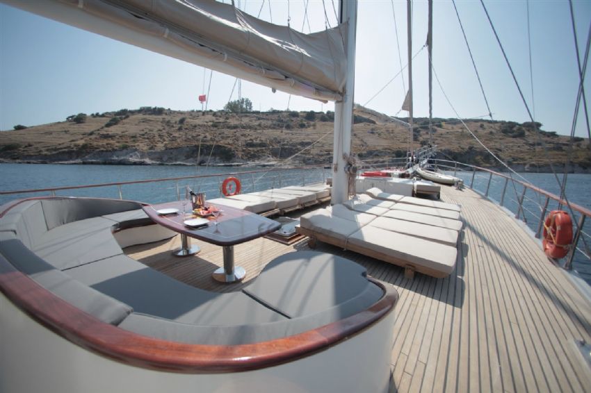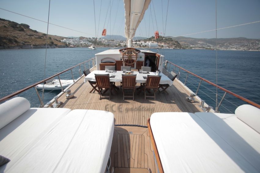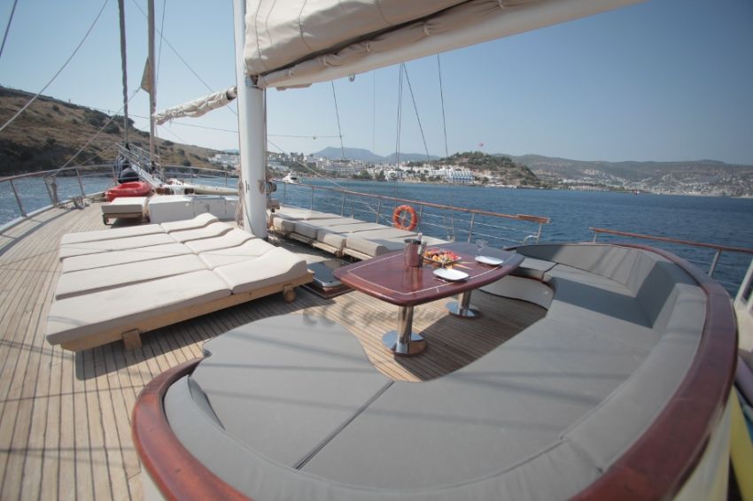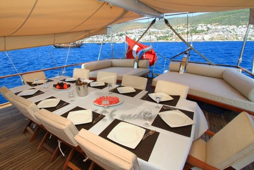 2003 Yılında yapılan ve 2013 yılında komple yenilenen teknemiz 2 master ve 4 double kabine sahiptir. Teknemiz oldukça geniş güverte, salon ve kabinlere sahip olup, misafirlerine kaliteli bir mavi yolculuk imkanı sunmaktadır.