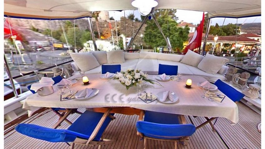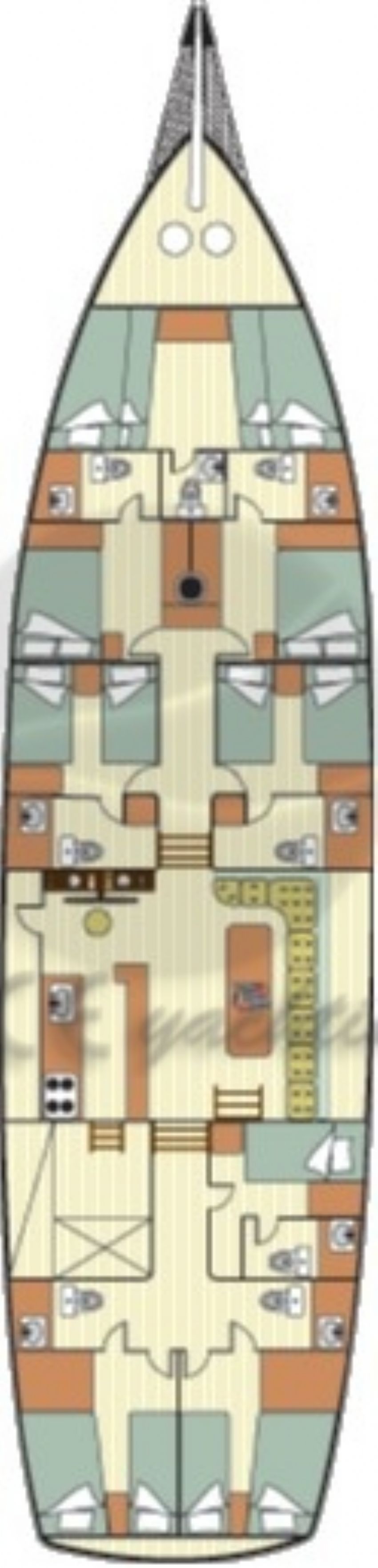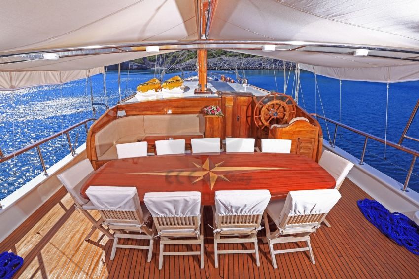 Dalış malzemeleri, Balık tutma malzemeleri, Güneş tenteleri, Güneş yatakları, Güvertede duş, Deniz merdiveni