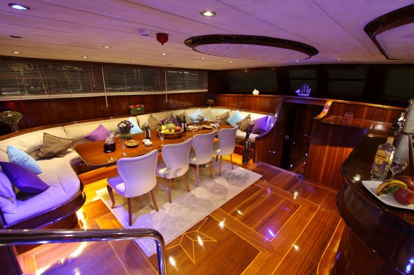 2012 yılında denize indirilen 33 metre uzunluğundaki teknemiz, ilk günden itibaren gerek estetik görünümü gerekse geniş ve konforlu yaşam alanlarıyla dikkat çeken teknelerimiz arasındadır. Her biri alanında deneyimli mürettebatı ile güler yüzlü ve müşteri memnuniyeti odaklı hizmet vermektedir. Hava ve deniz şartları uygun olduğu takdirde yelken seyri de yapabilen teknemizde Türk karasularında internet bağlantısı da bulunmaktadır. Dear Lila Yatı.