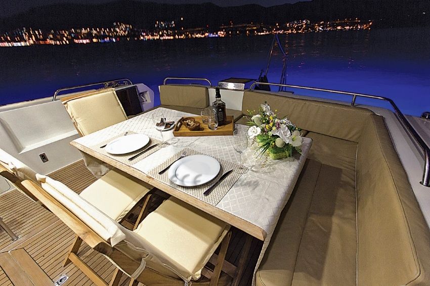 2016 sezonunda komple yenilenerek revize edilen 3 kamaralı, 6 kişi kapasiteli lüks teknemiz; mavi yolculuk tatiliniz boyunca ihtiyacınız olabilecek lüks detaylar düşünülerek donatılmıştır. 18 m. uzunluğundaki teknemizin flybridge diye adlandırdığımız üst yaşam alanı ve emsallerine oranla ekonomik fiyatlarıyla mavi tur tatili planlayan değerli misafirlerimizin öncelikli tercih sebebi olmaktadır. Deep Blue Motoryat