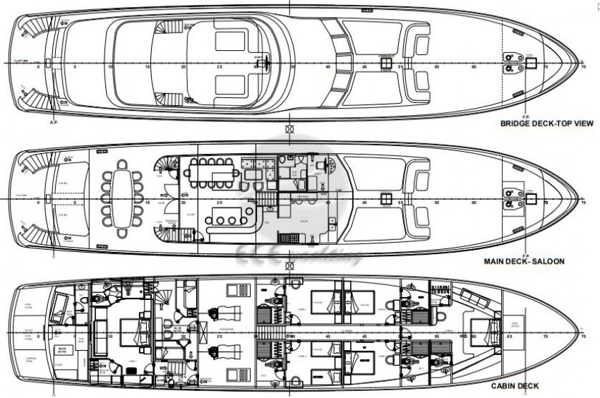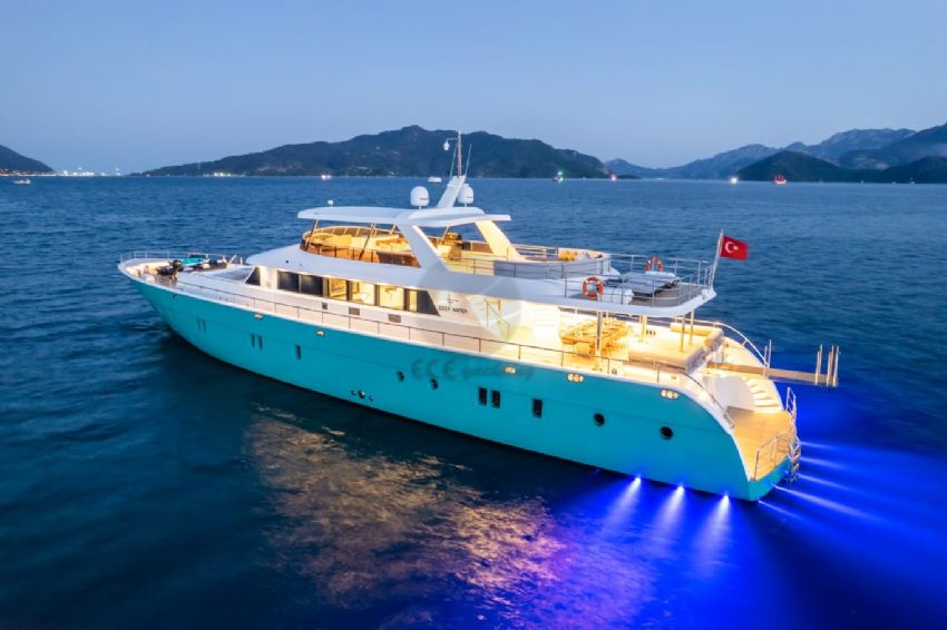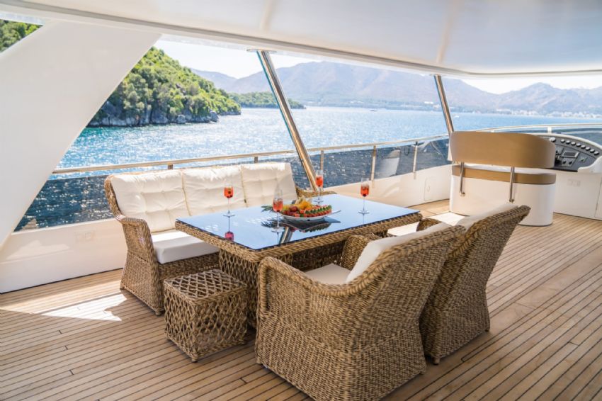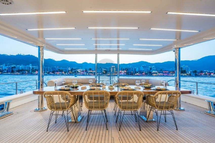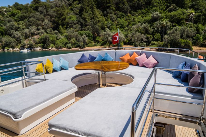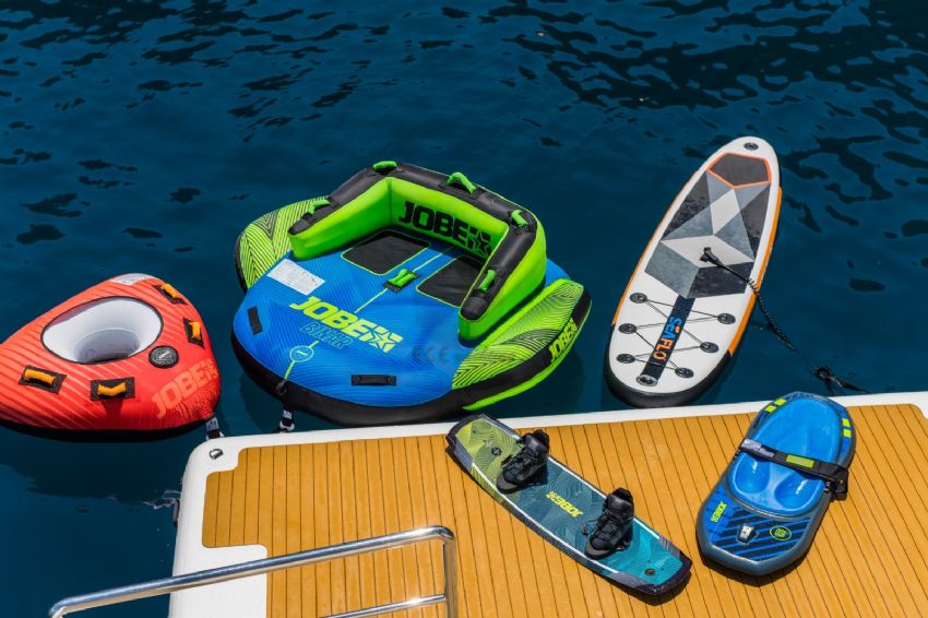 Şnorkel ekipmanları, Balık tutma malzemeleri, Güneş tenteleri, Güneş yatakları, Güvertede duş, Deniz merdiveni, Çeşitli eğlence oyunları,