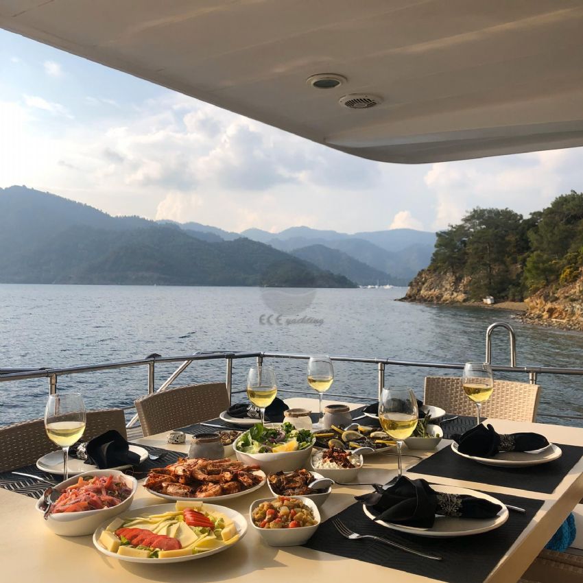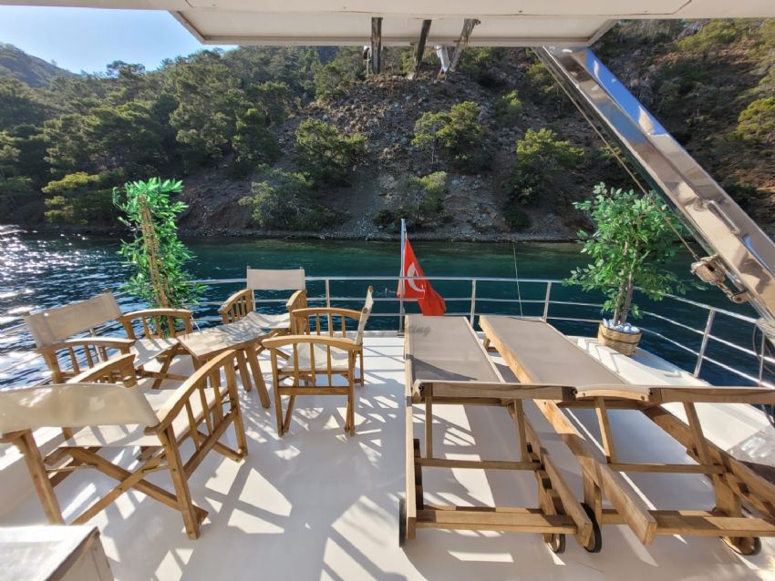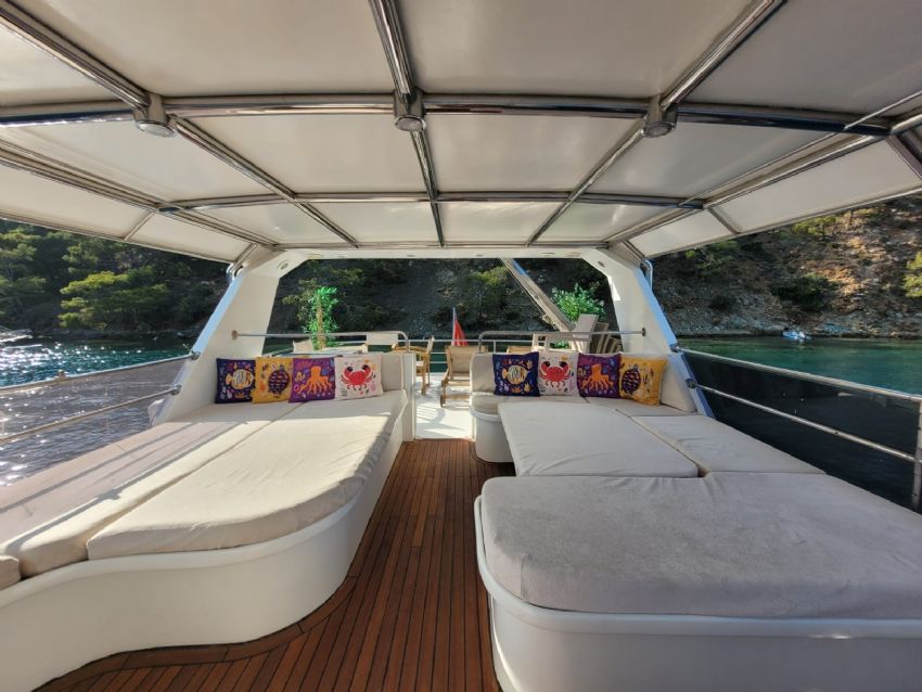 Şnorkel ekipmanları, Balık tutma malzemeleri, Güneş tenteleri, Güneş yatakları, Güvertede duş, Deniz merdiveni