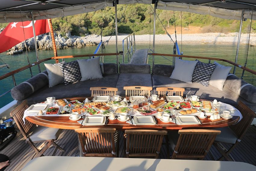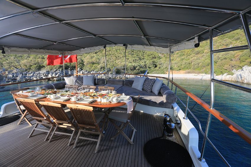 Dalış malzemeleri, Balık tutma malzemeleri, Güneş tenteleri, Güneş yatakları, Güvertede duş, Deniz merdiveni